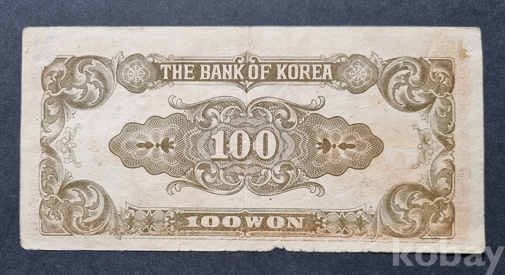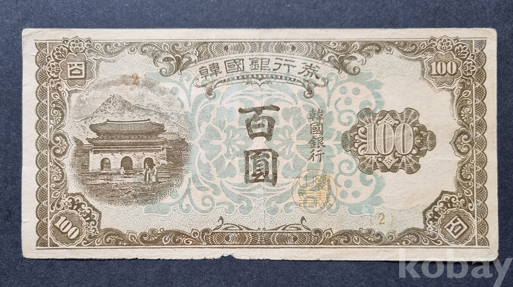 X-5 / 최초의 한국은행권 지폐 "백원" (광화문, 당초문양) 1950~1953년