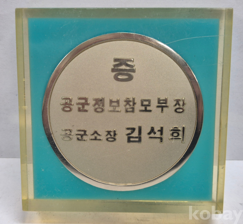 - 연대미상의 대한민국공군 문진으로 앞면에 대한민국공군 - R.O.K AIR FORCE / 뒷면에 증 공군정보참모부장 공군소장 김석희 양각되어 있는 문진 입니다.