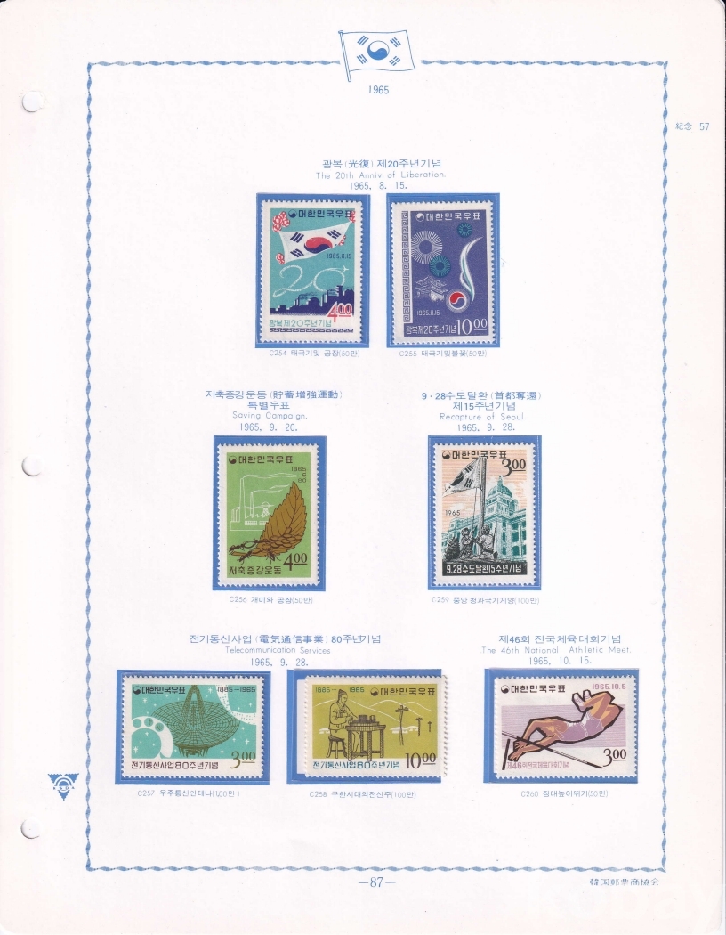 - 한국우표앨범 모음展 - 1965년 광복 제20주년 기념 우표 포함 7종
