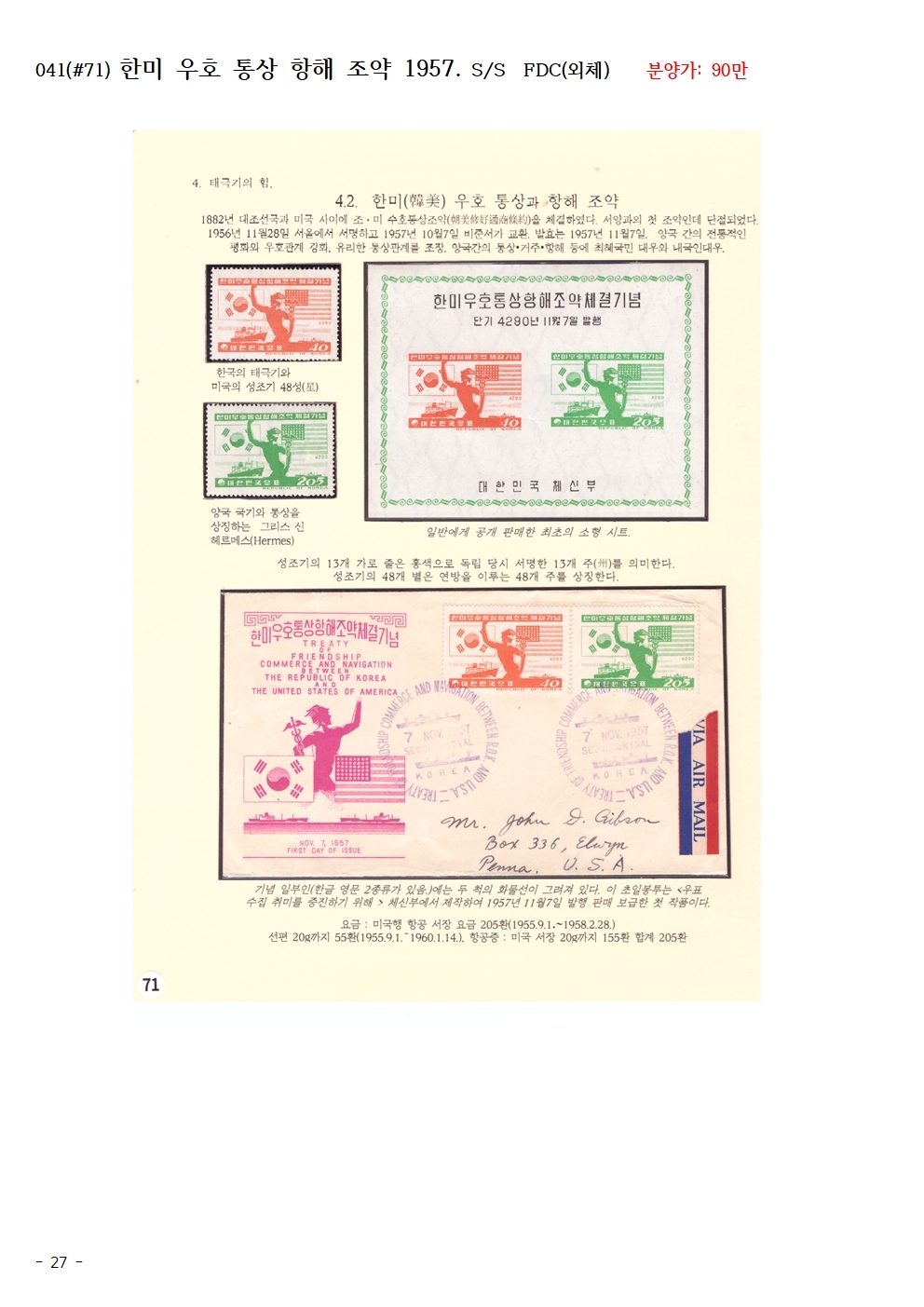 040(#70) 한미 상호 방위 협정 우표10환권. 전지.