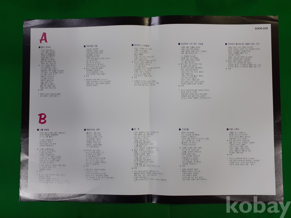 | 자켓상태 | G : 눈에 띄는 손상, 테이프, 필기 존재 | 음반상태 | EX : 재생에 영향 없는 가벼운 기스 존재 | 발매정보 | 알수없음 | 가사지여부 | 유 |