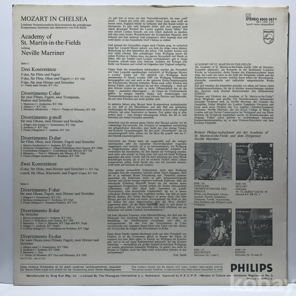 LP 35,350-76 Mozart In Chelsea - DivertimentI & Kontretanze - Neville Marriner . ` 74 성음 자켓 EX+ 알판 EX