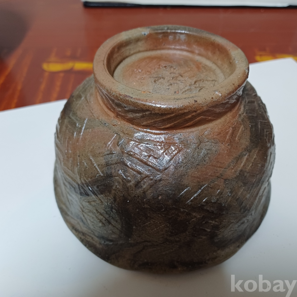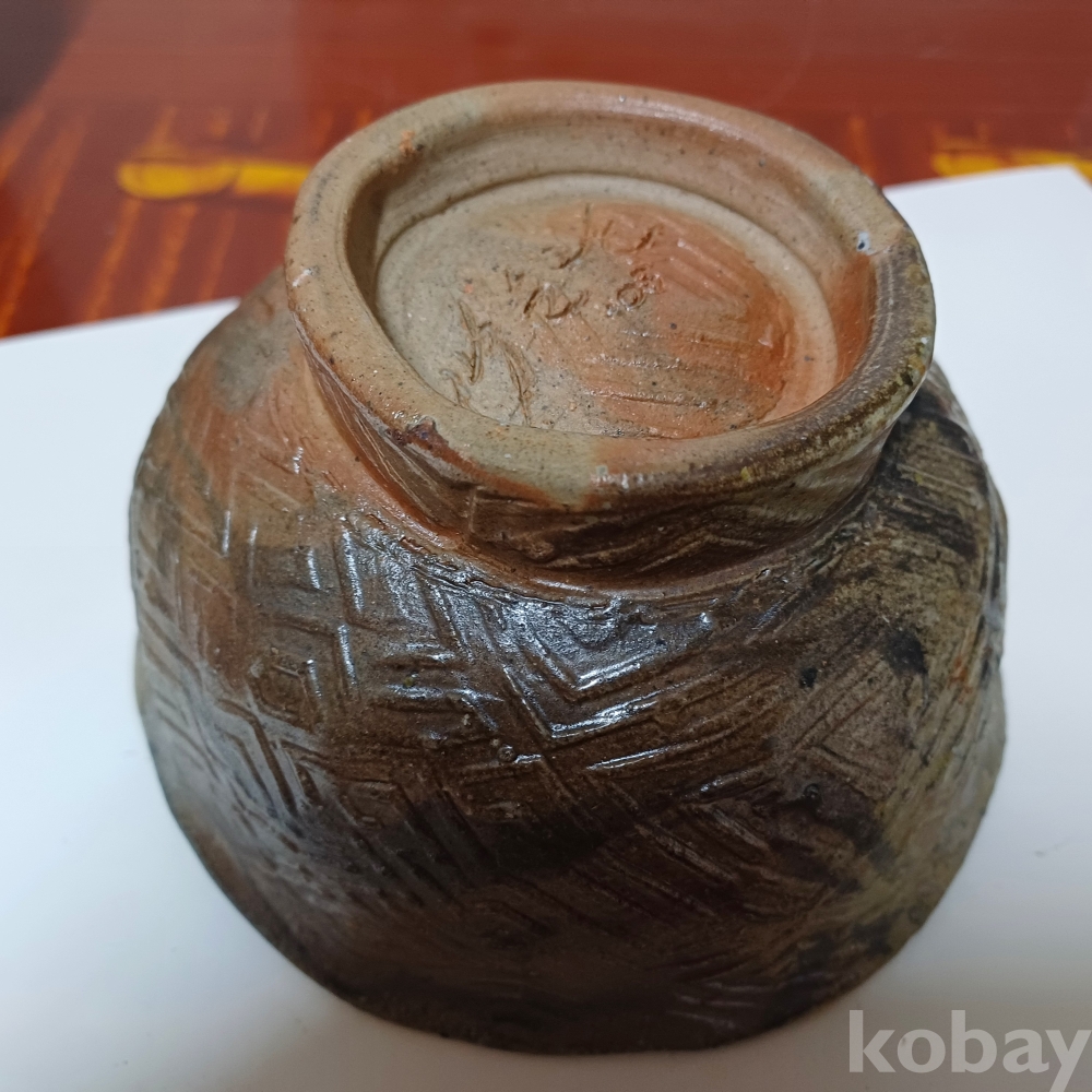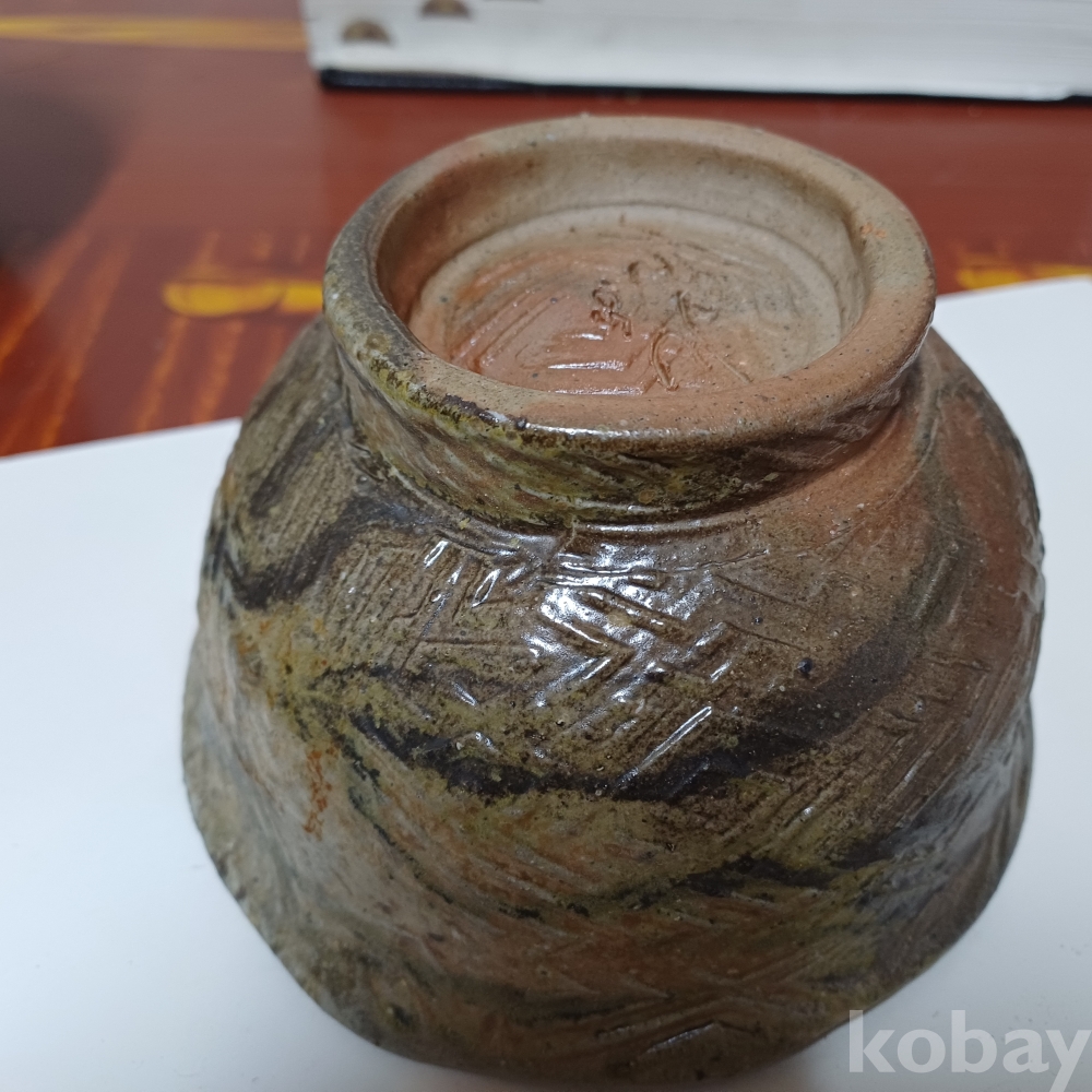 다완 외벽은 음각된 나무로 때려서 자연스런 문양을 만듭니다.