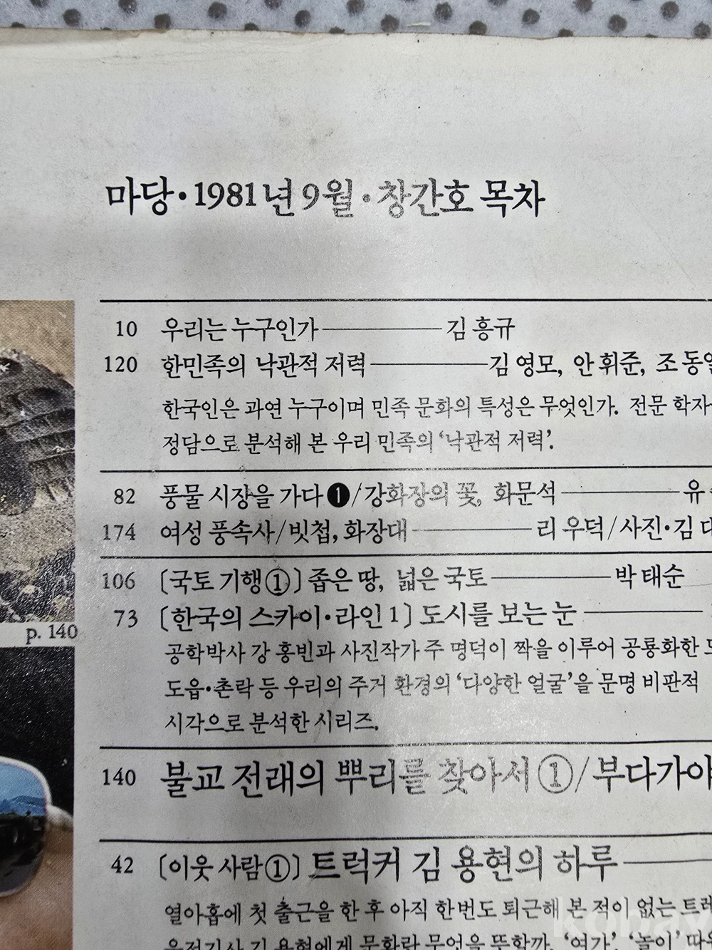 근대생활사 / 창간호 마당 1981년 / 앞 표지탈락