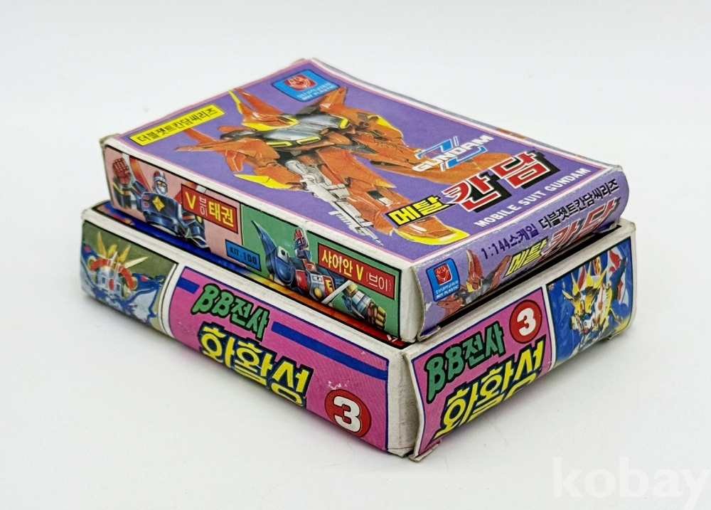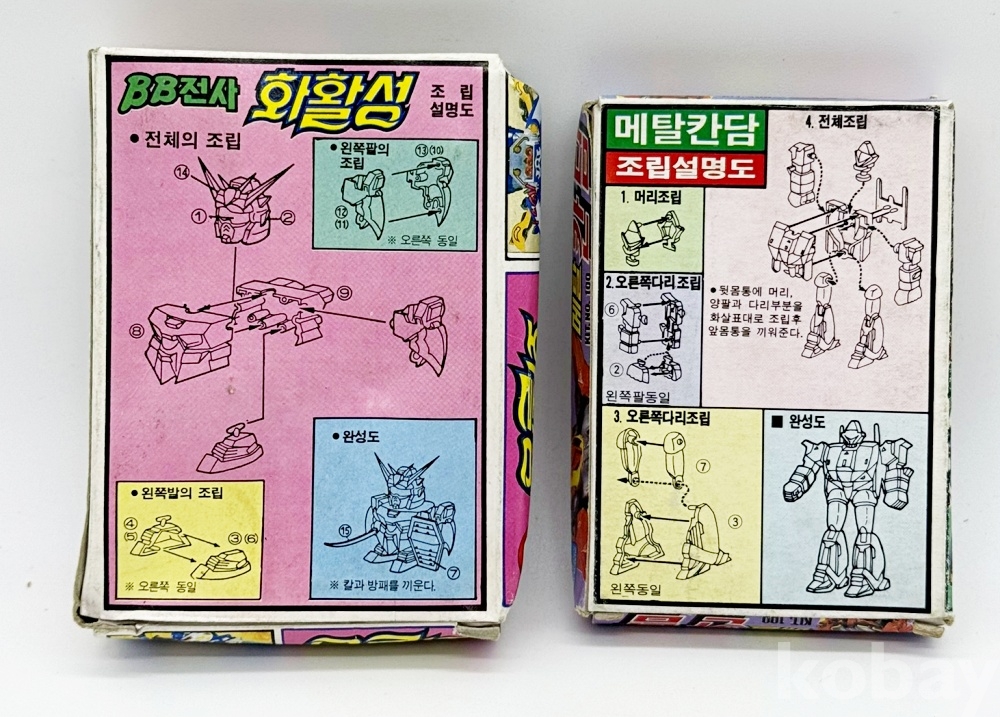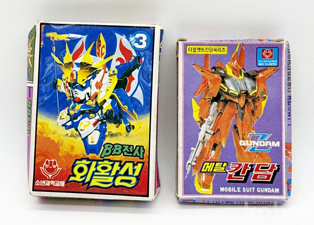 상품설명 | 1. BB전사 화활성 / 8.5 x 12.7 cm / 박스 찌그러짐 2. 더블젯트칸담씨리즈 '메탈 칸담' / 1:144 / 8 x 11 cm / 비닐 없음 총 2점.