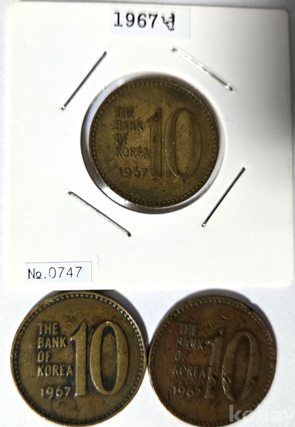 1967년 한국은행 10주 유통주화 (2,250만개 발행) 사용제 3개