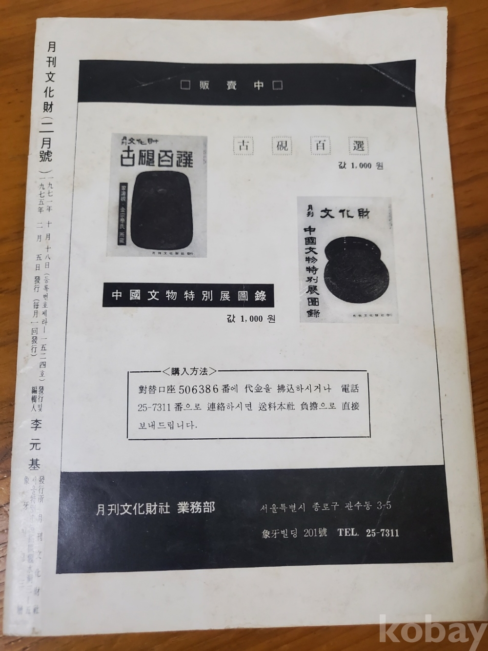 1. 월간문화재 통권 38호, 월간문화재사, 1975년, 50쪽, 상태 상, 사진 참조