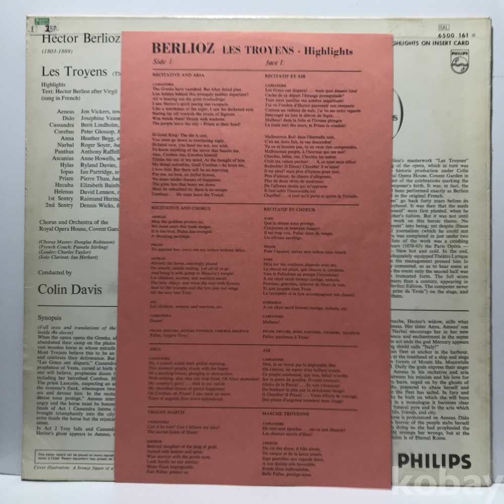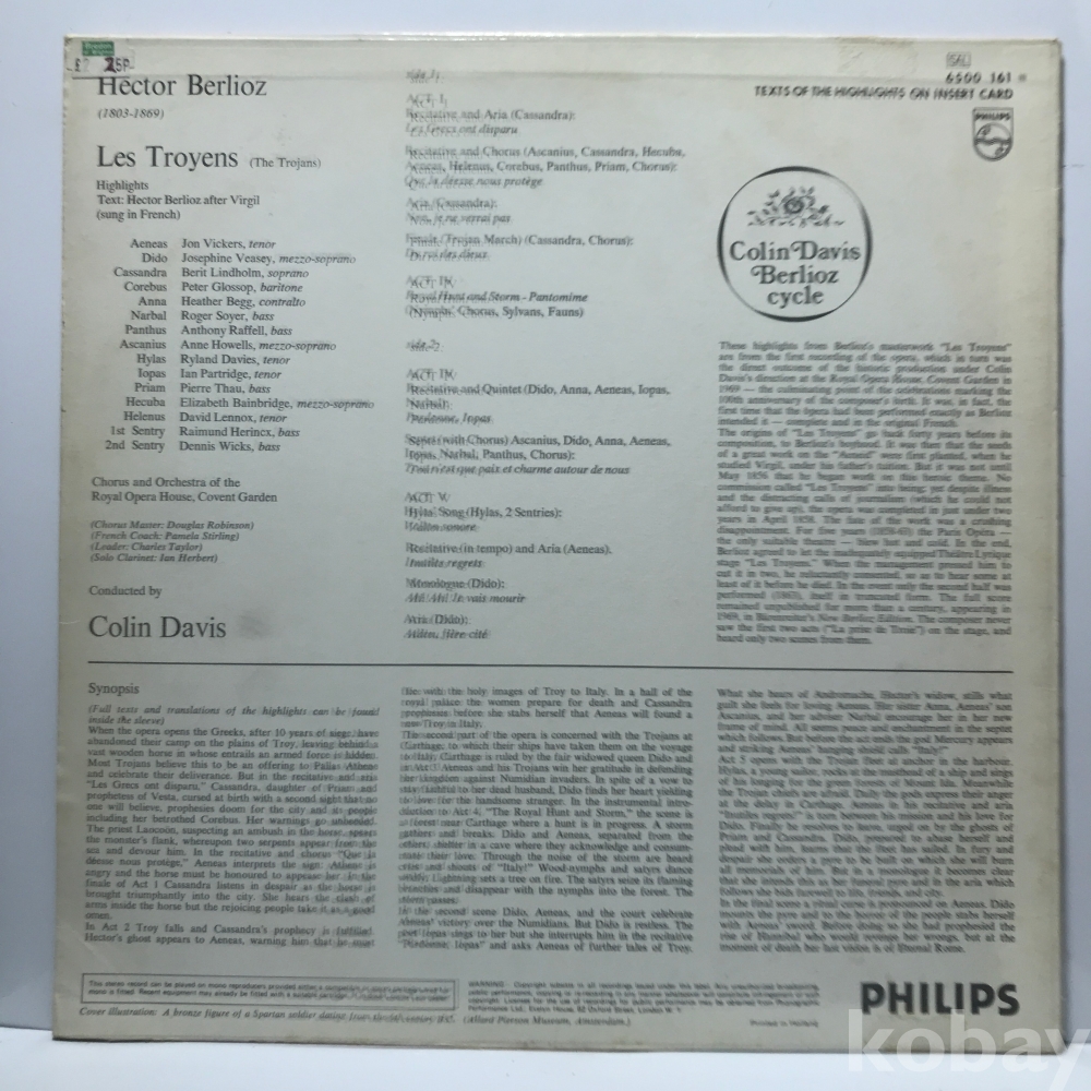 LP 35,250-67 Highlights Berlioz Les Troyens - Colin Davis . ` 69 수입 자켓 EX 알판 EX