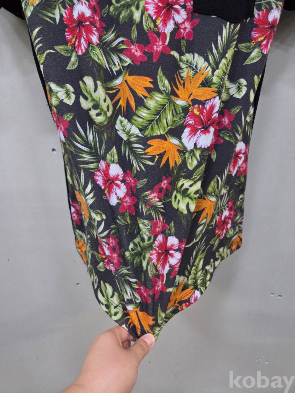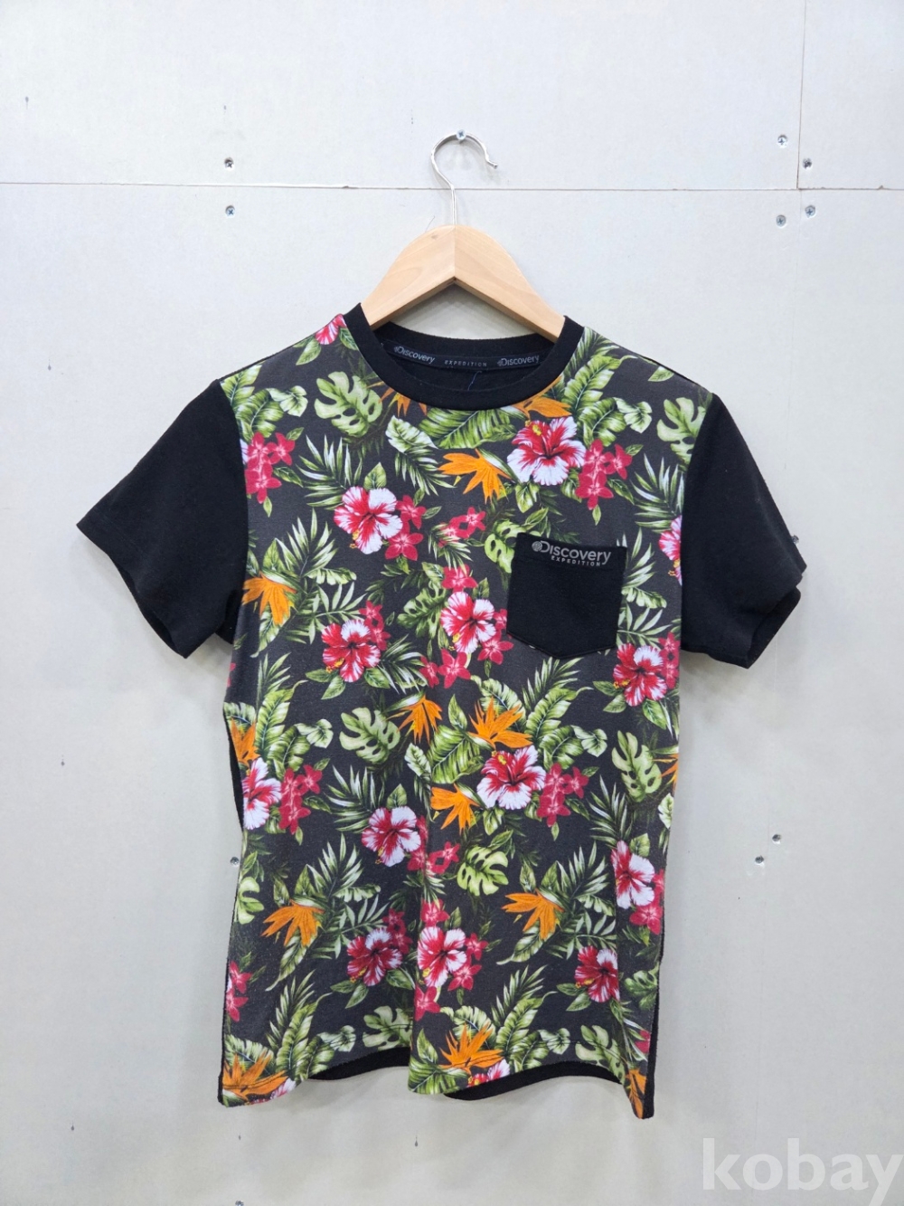 [천원옷장] #25 디스커버리(DISCOVERY) 남성 블랙 하와이안 플라워 반팔 티셔츠 55-66