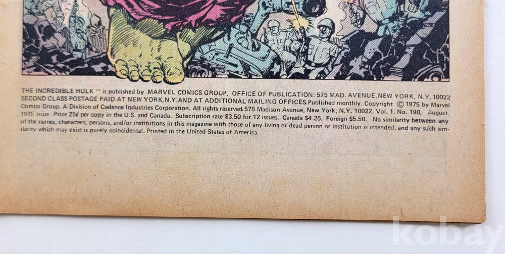물 품 명 | the Incredible HULK / Vol.1 #190 Aug. 1975 / MARVEL COMICS GROUP / 미국 |