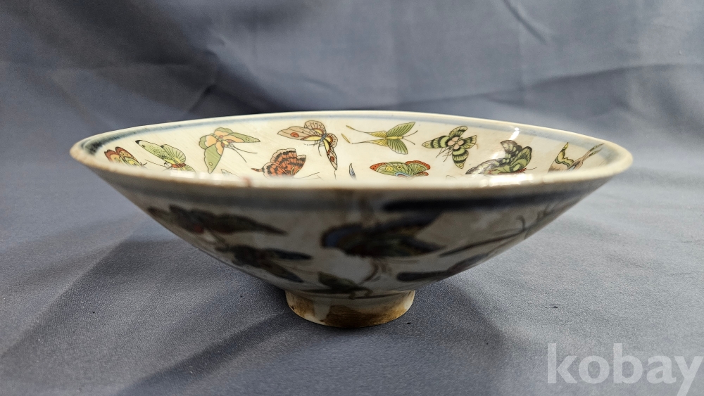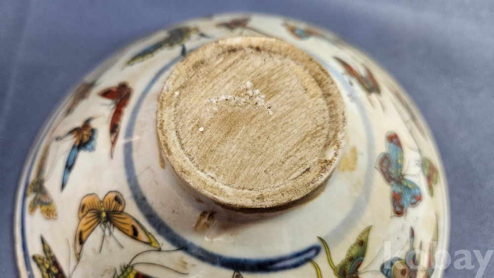 안팎으로 나비문양이 가득한 청화백자 다완입니다.