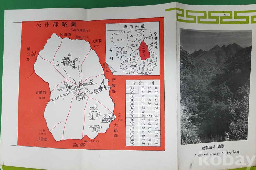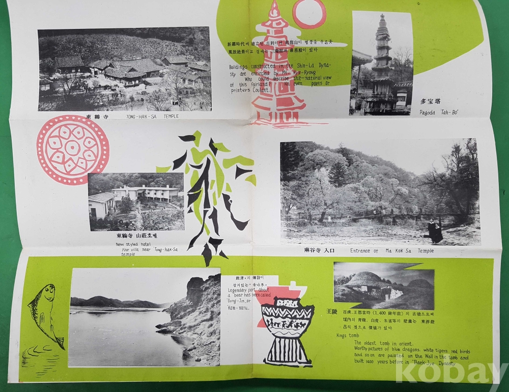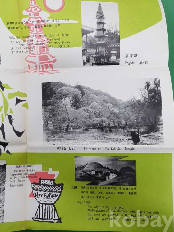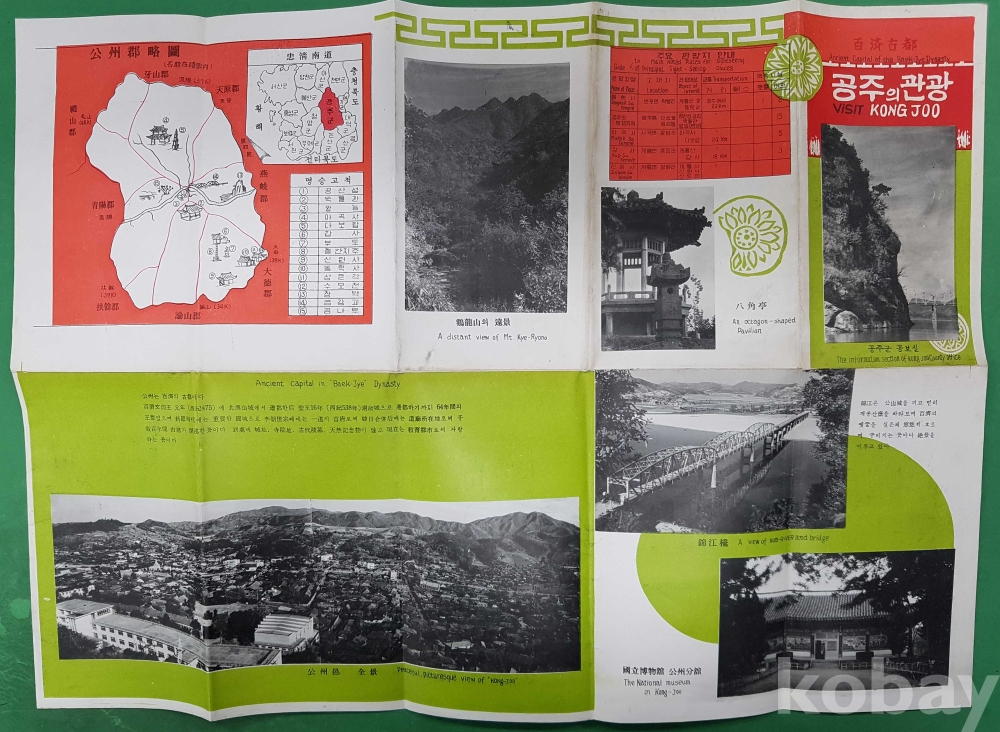 **** 공주군 공보실 발행 [백제고도 공주의 관광] 팜플릿 ※ 공주군약도,주요 관광지 안내와 함께 공주읍 전경,관광지 사진이 국한문,영문 설명이 수록됨