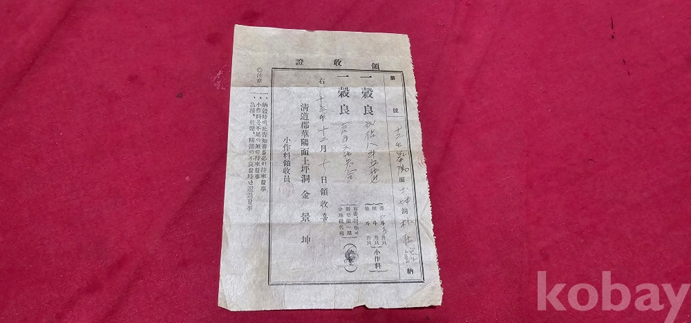 소작료 영수증 17 X 11 cm