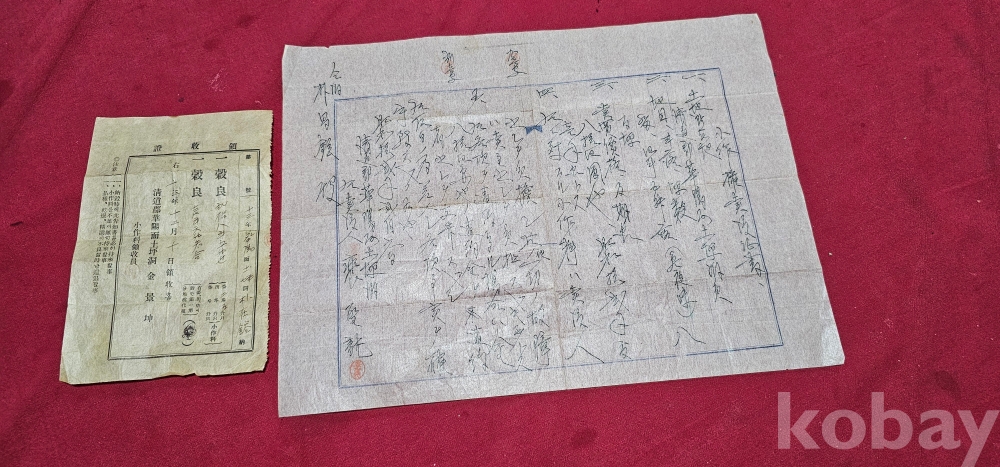 1938년 강점기 귀한 소작료 채무증서1枚 소작료 영수증 1枚