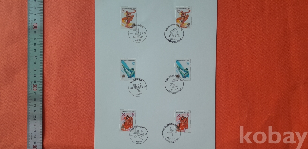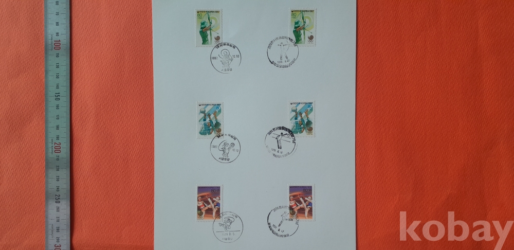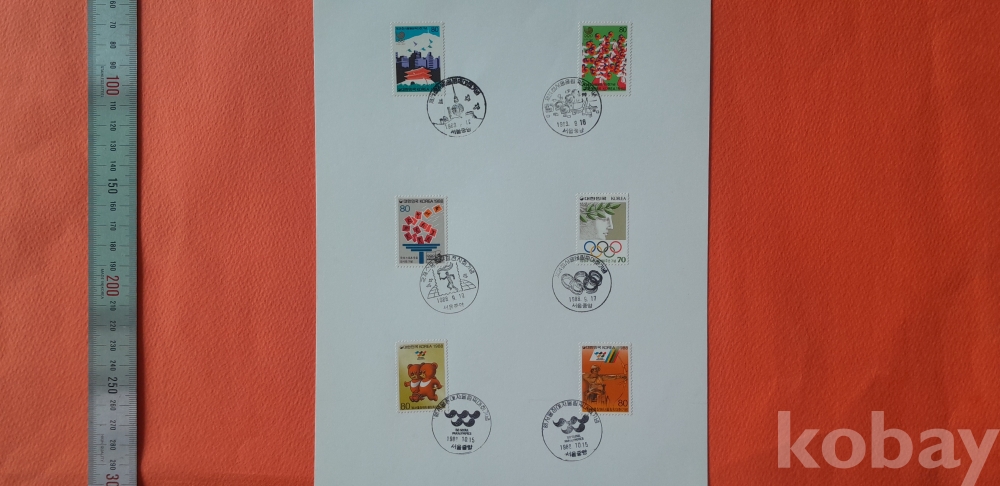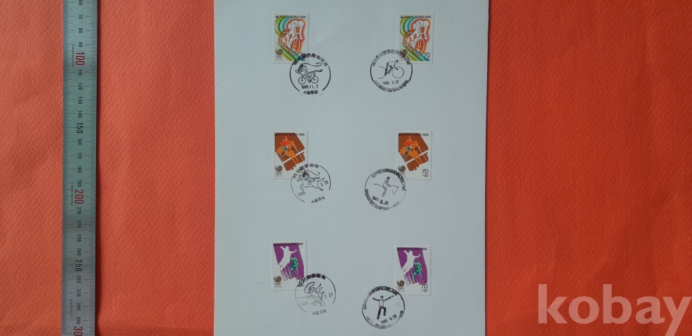 88서울올림픽 대회 관련 대지 10장 우표 60종이 첩부된 기념 일부인 모음 입니다.