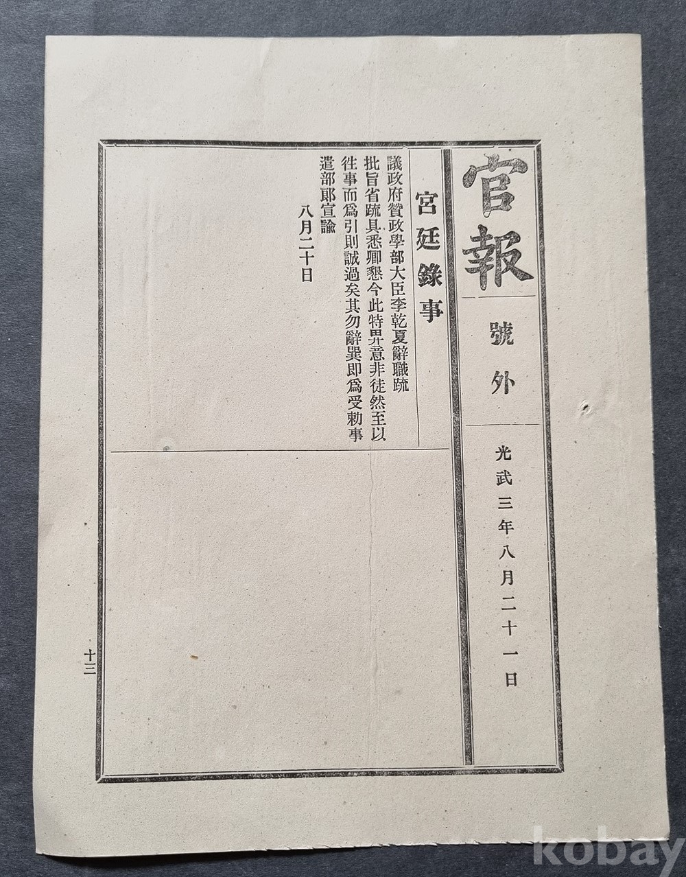 hK-1 / 광무년대 구한말시대 "호외" 오리지널 희귀품