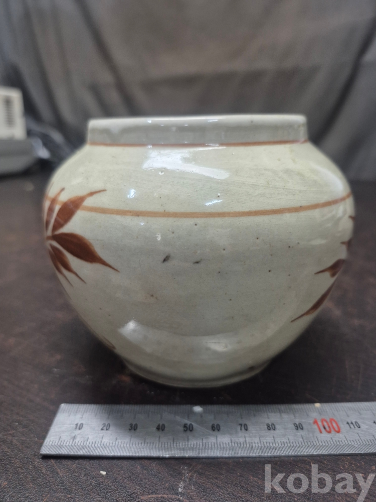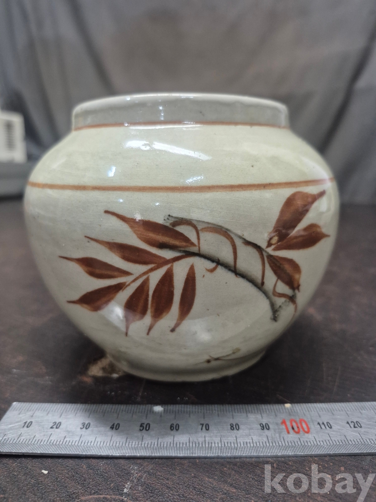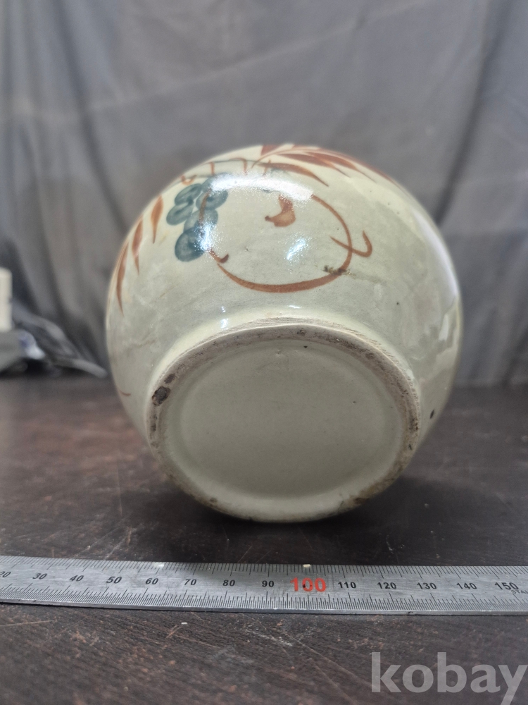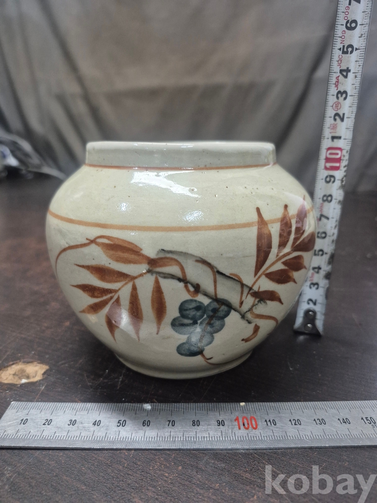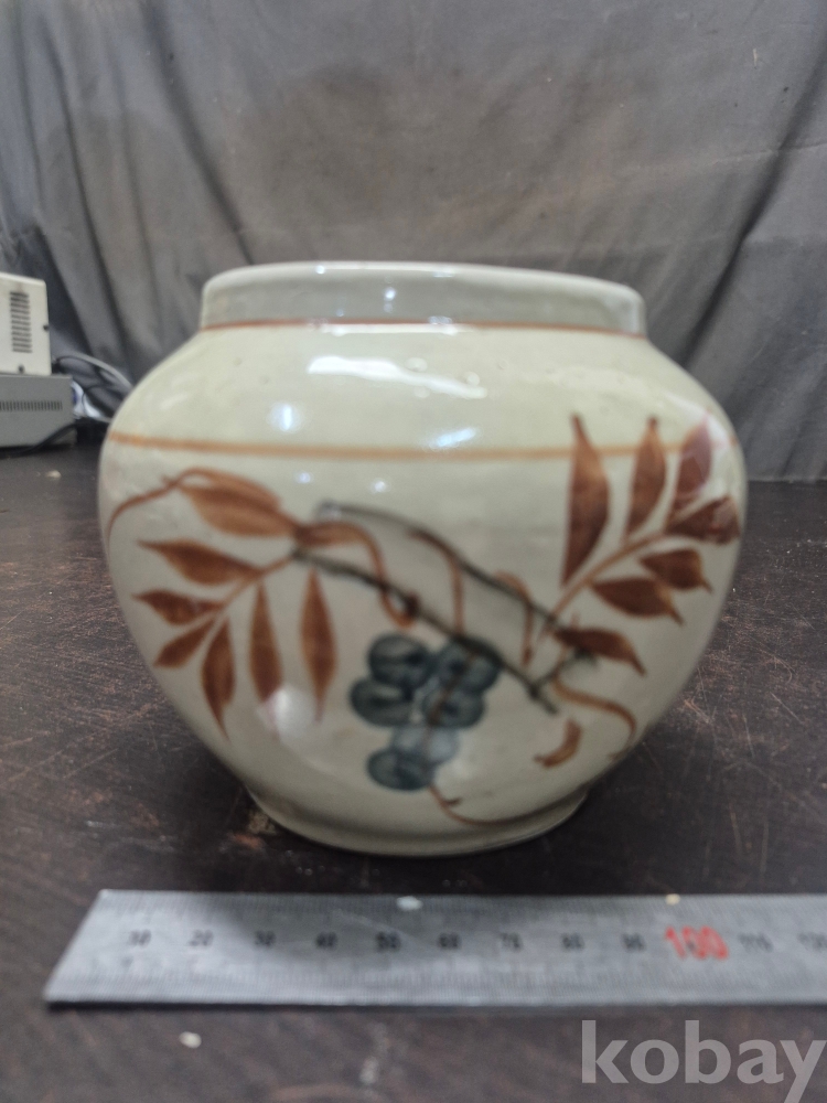 외정시절 포도와 잎사귀 문양이 그려져 잇는 철화 백자 외사기 13*13*13