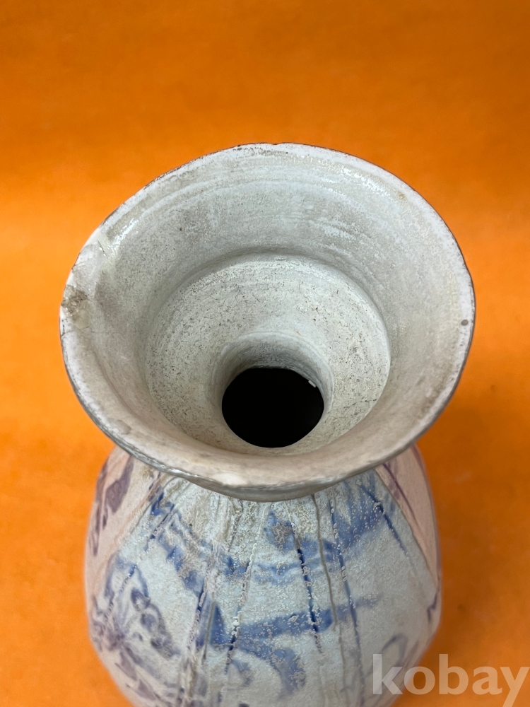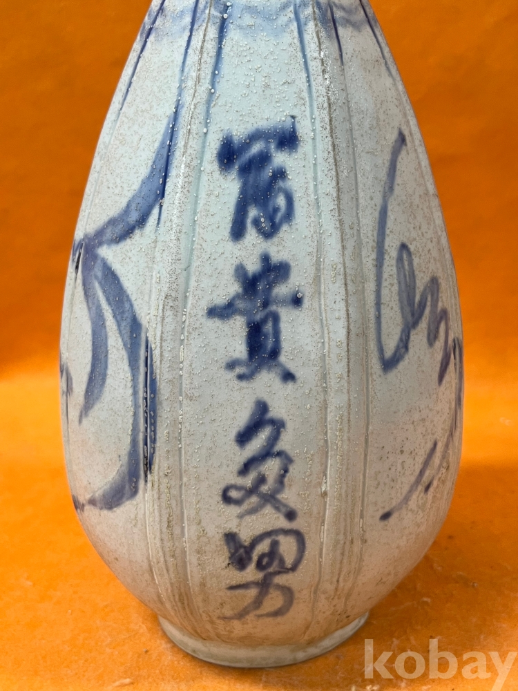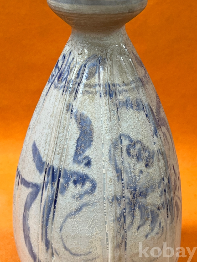 각 면마다 청화(코발트 안료)로 활달하게 문자와 초화문이 그려져 있습니다.