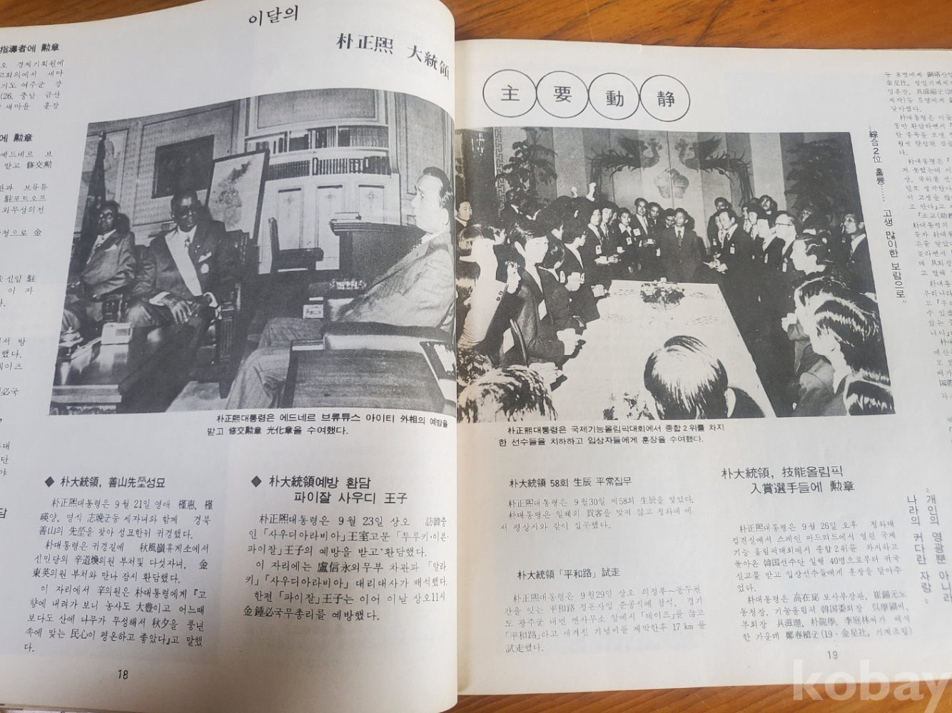 2. 내용 : 박정희 대통령과 새마을 관련 / 외신 / 한일 회담 관련 / 스포츠 관련 소식 / 24회 국전 / 해외 토픽 / 예술과 연예가 동정 / 관련 기사와 풍부한 사진으로 구성