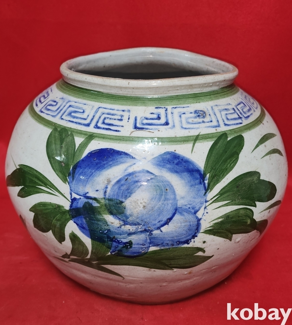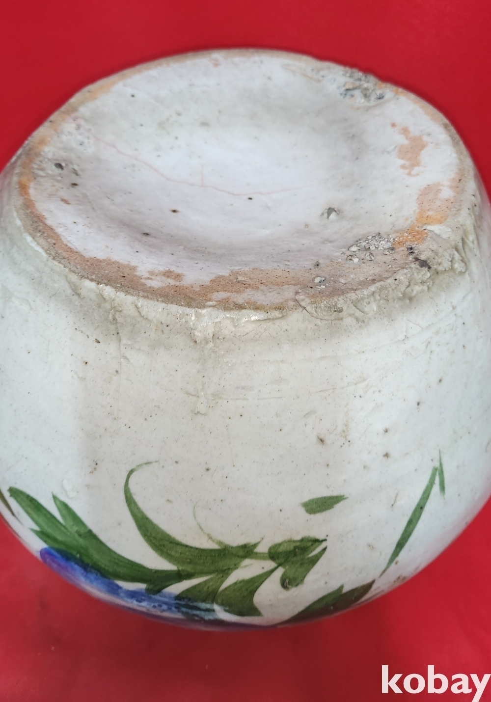 굽에는 실유있습니다,양면에 큰 목단꽃이 도안으로 있습니다,