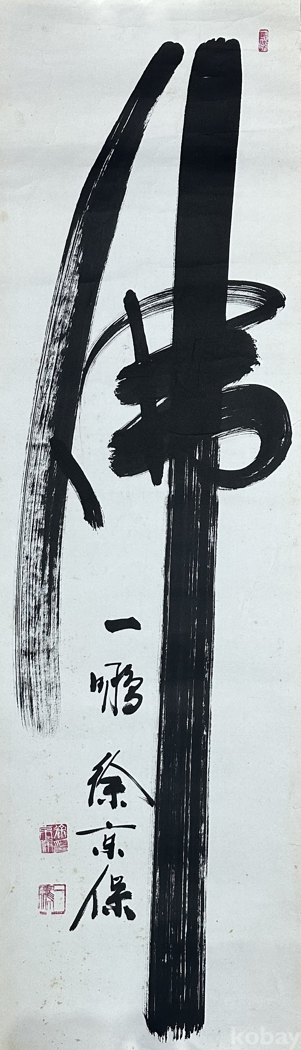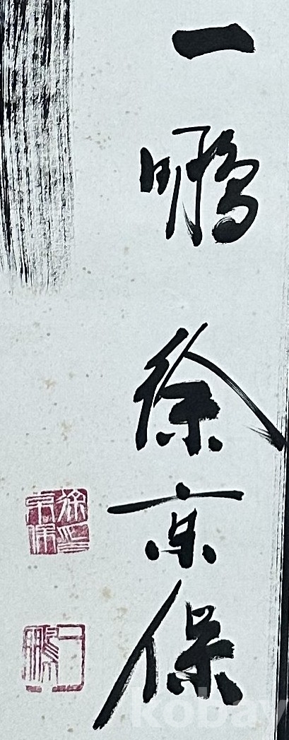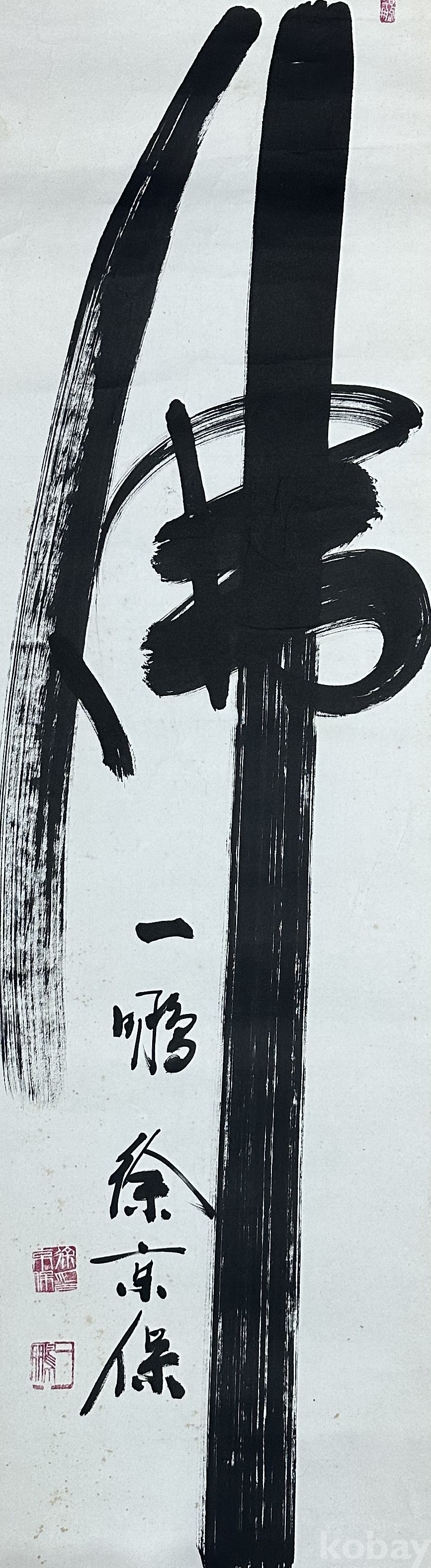 본 작품은 ‘불(佛)’ 한 글자를 대필로 강렬하게 표현한 선서예 작품으로, 작가 서경보의 법명 ‘일응(一應)’이 함께 쓰여 있습니다. 화면은 단 두세 획의 강한 필선으로 구성되어 있지만, 그 안에 수행자의 호흡과 묵향의 깊이가 느껴집니다. 굵고 억센 먹의 농담과 속도감 있는 붓놀림은 선(禪)의 순간적인 깨달음과 정신의 집중을 상징하며, 화면 하단에는 ‘一應 徐京保’와 인장이 선명하게 새겨져 있습니다. 불교 서예와 선화의 본질을 간결하게 담은 작품으로, 수묵의 기운과 여백의 미가 돋보입니다.