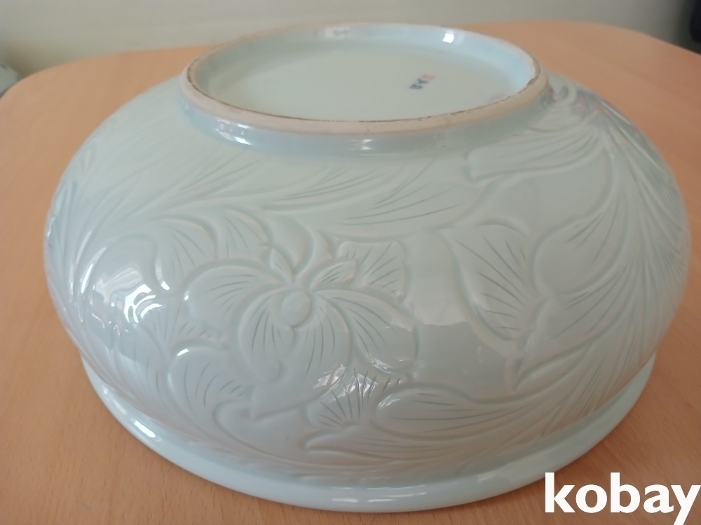 꽃 문양이 음각으로 있는 대형 수반 도자기 입니다.