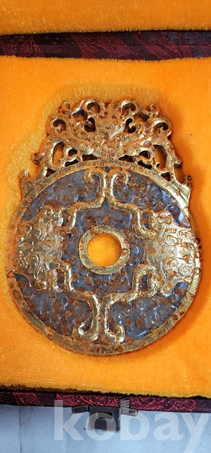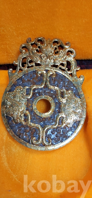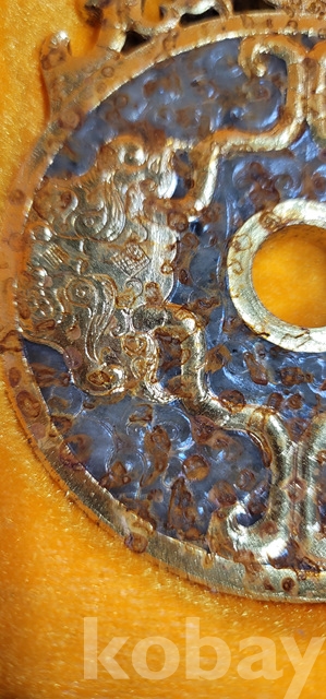 f-64.고급케이스에든오래된 금칠된 양면조각 천연수산옥장신구