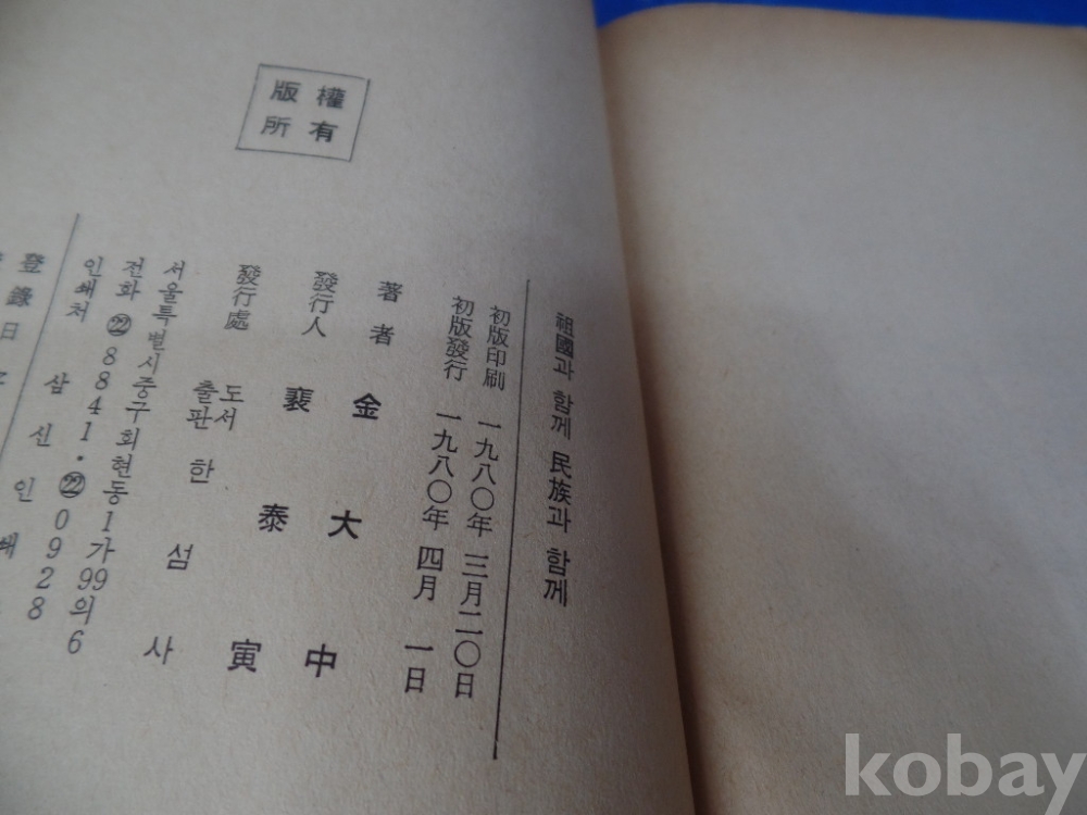 조국과 함께 민족과 함께, 김대중 ,,,김대중 지음,,,80년초판,,,