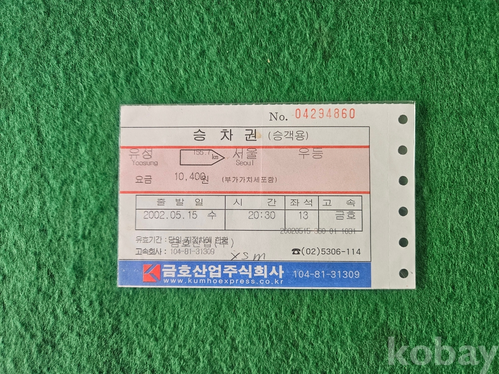 - 유성-서울 승차권 (승객용) 우등