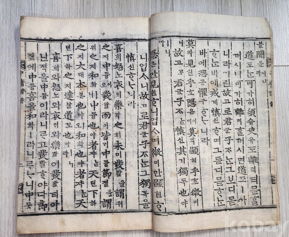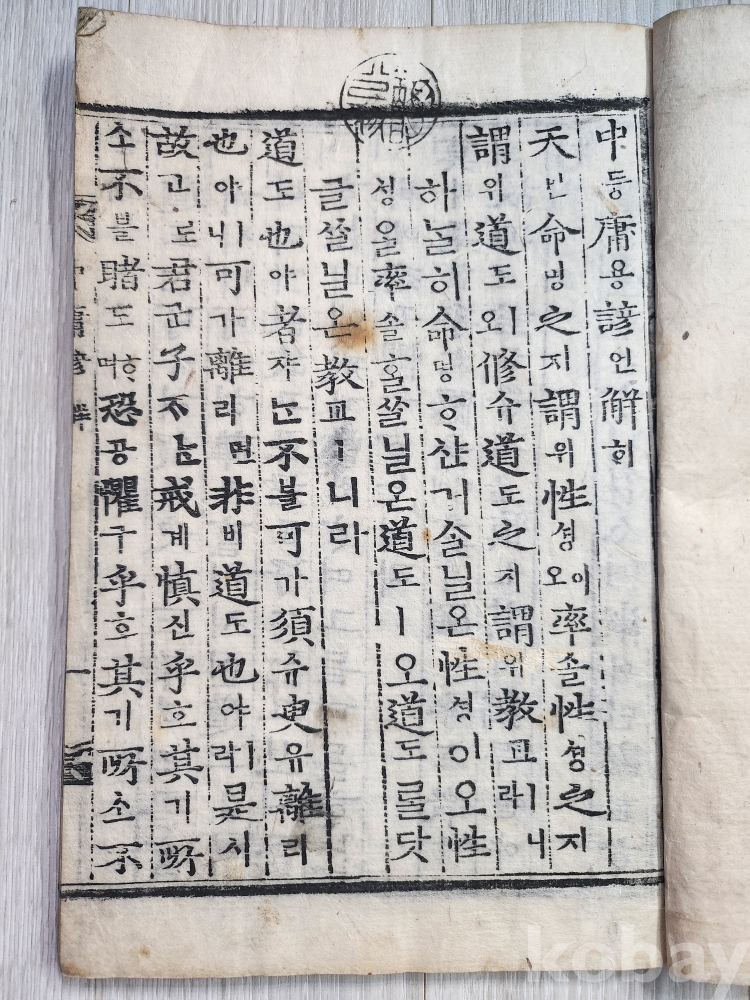 조선시대 전주판 중용언해본(한글) 단권 입니다 세경오중춘개간이라 찍혀 있습니다 낙질없이 양호합니다