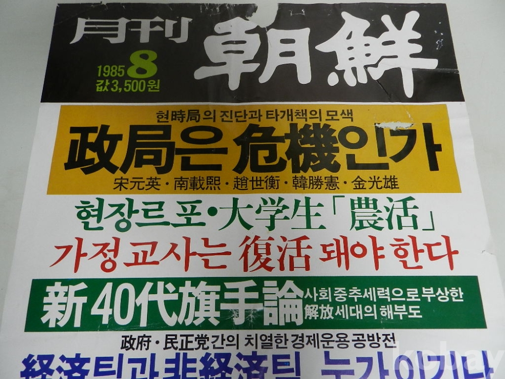 80년대 조선일보 발행 유명잡지 월간조선 서점 광고용 가로39 세로53cm 의 대형포스터 로 책 중요 내용 타이틀이 나와 있어 전시자료로 활용하면 좋을거 같습니다 당시 서점 실사용으로 떼어낸 흔적등 사용감 있을수 있습니다 이미지 참고 바랍니다