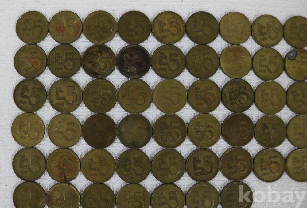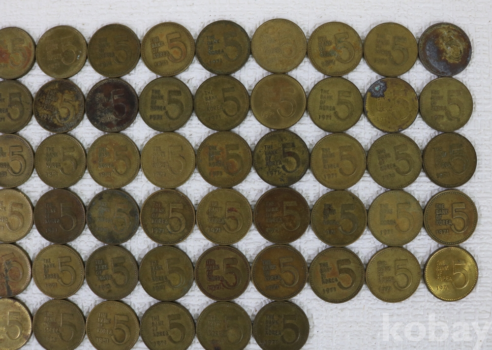 적동주화는 1970년 중반까지 발행하였고 후반부 넘어가면서 황동으로 교체되어 발행 하였습니다.