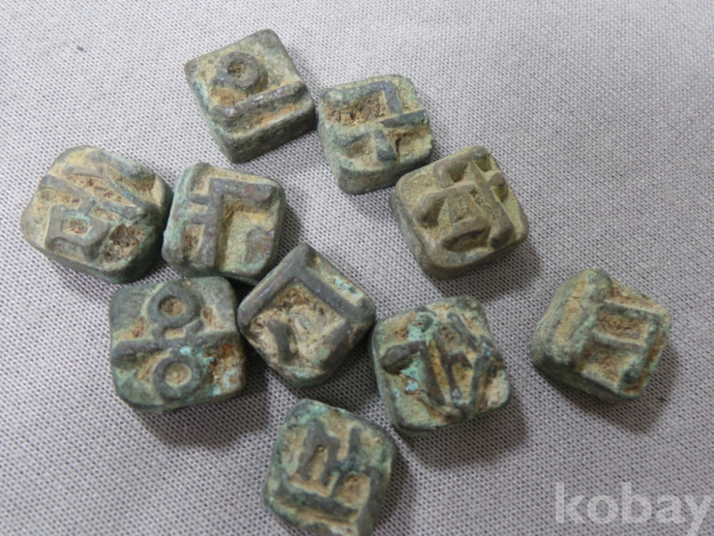 옛날 한글 글자가 보이는 동활자 10점
