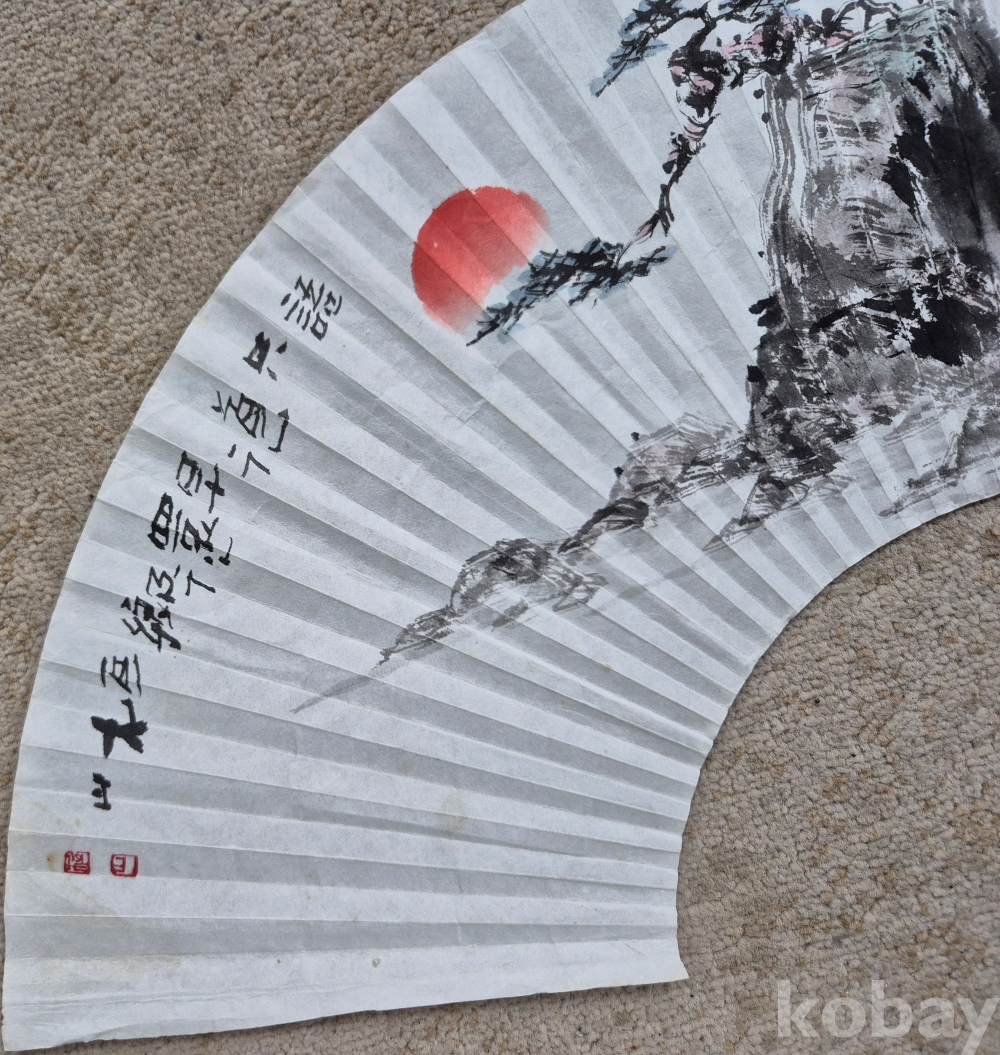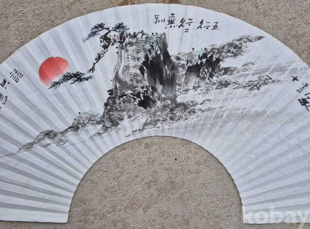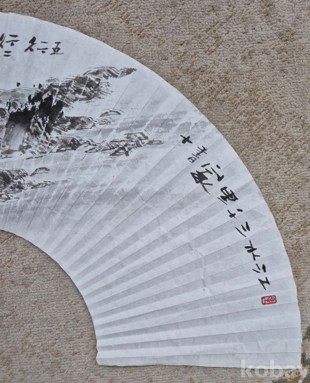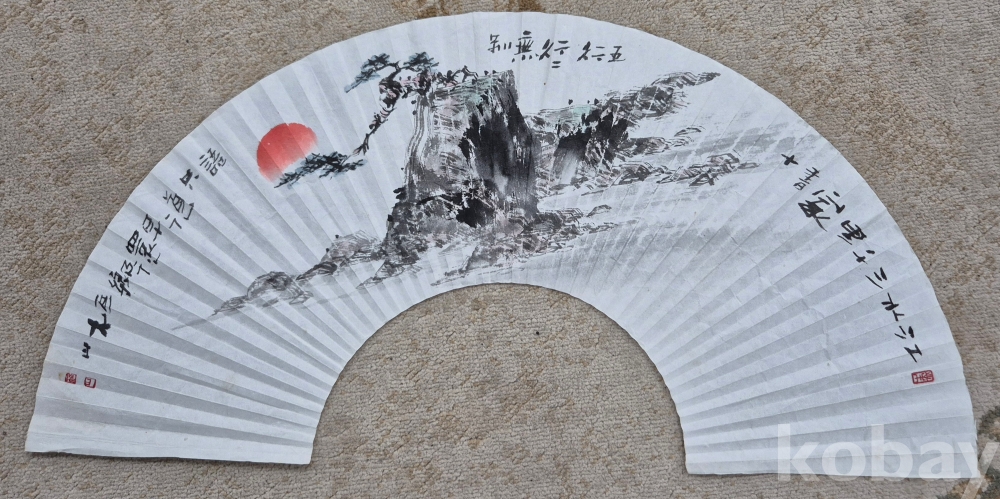 시원스럽게 잘 그려진 필력 대단한 상당한 수준의 화가분 작품 추정되는 선면 산수화'이오니