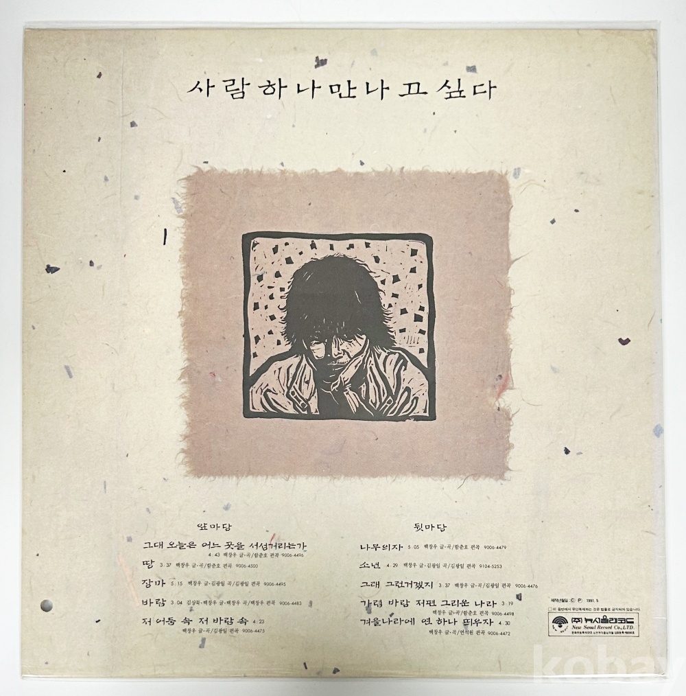 상품 설명 | Side A 1. 그대 오늘은 어느 곳을 서성거리는가 2. 땅 3. 장마 4. 바람 5. 저 어둠 속 저 바람 속 Side B 1. 나무 의자 2. 소년 3. 그래 그런거겠지 4. 가렴 바람 저편 그리운 나라 5. 겨울나라에 연 하나 띄우자 | ||