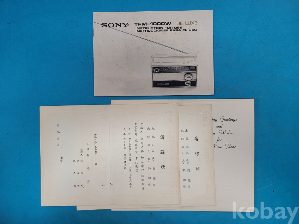 **** 조흥은행인천지점 연하장, '65년 청첩장 2부, 소니 라디오 사용설명서