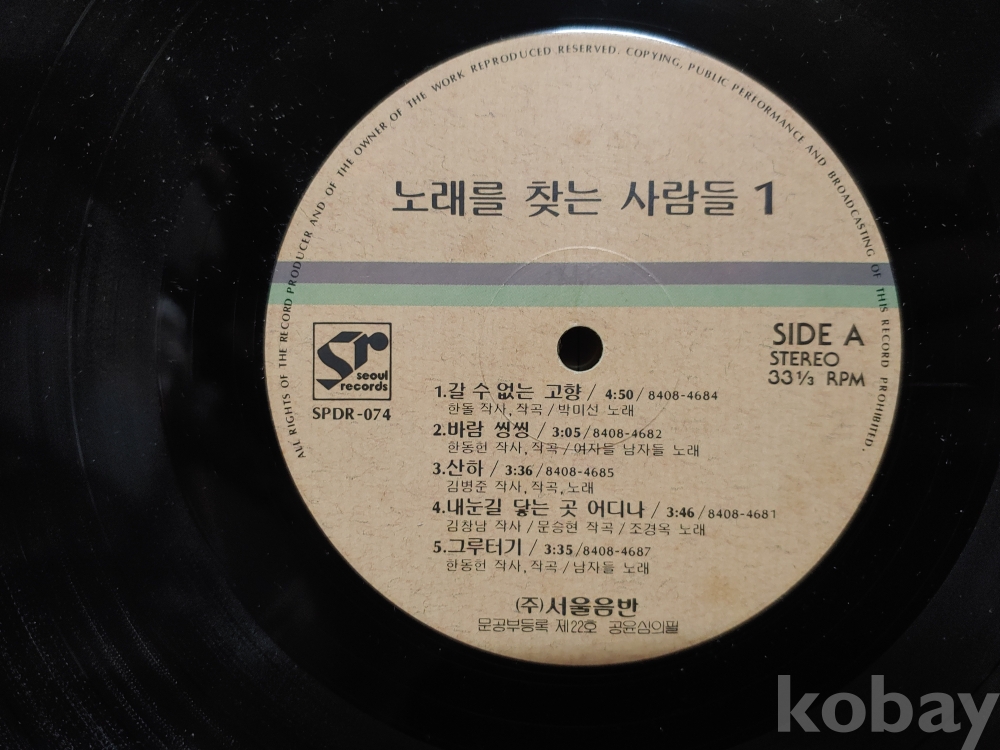 ""노래를 찾는 사람들 1집 LP판""