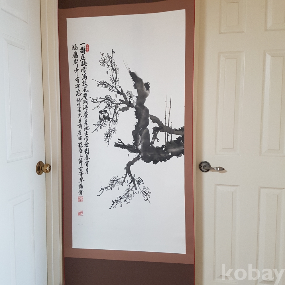 갈필로 유명하신 금석일님 미사용 매화그림 족자1점