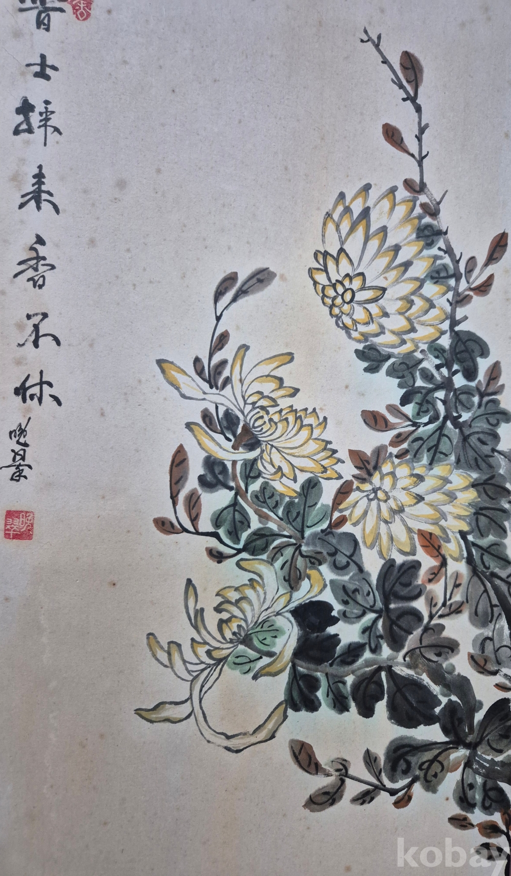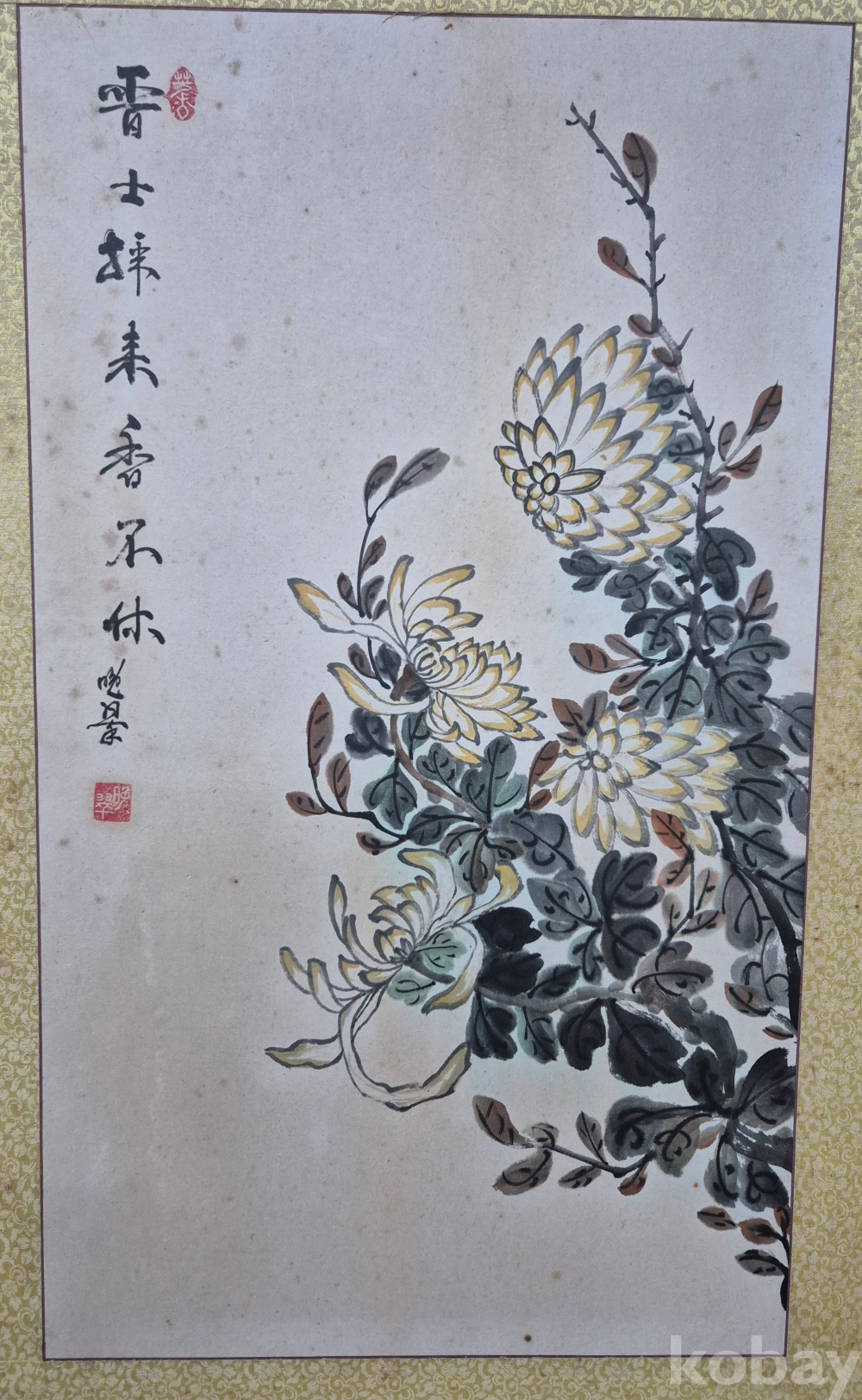 각종 미술대전 심사위원 역임하신 유명 문인화가 만취 김용복'화백님 수작 국화도'이오니