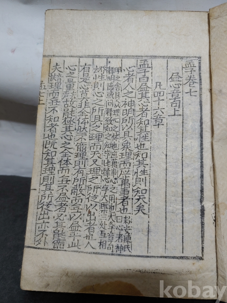맹자 대학 중용 --7책 (맹자-7권5책 / 대학-단권1책 / 중용-단권1책)...얼룩이 조금 있으나 상태 깨끗 함