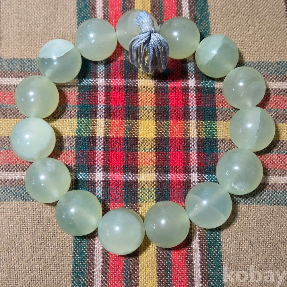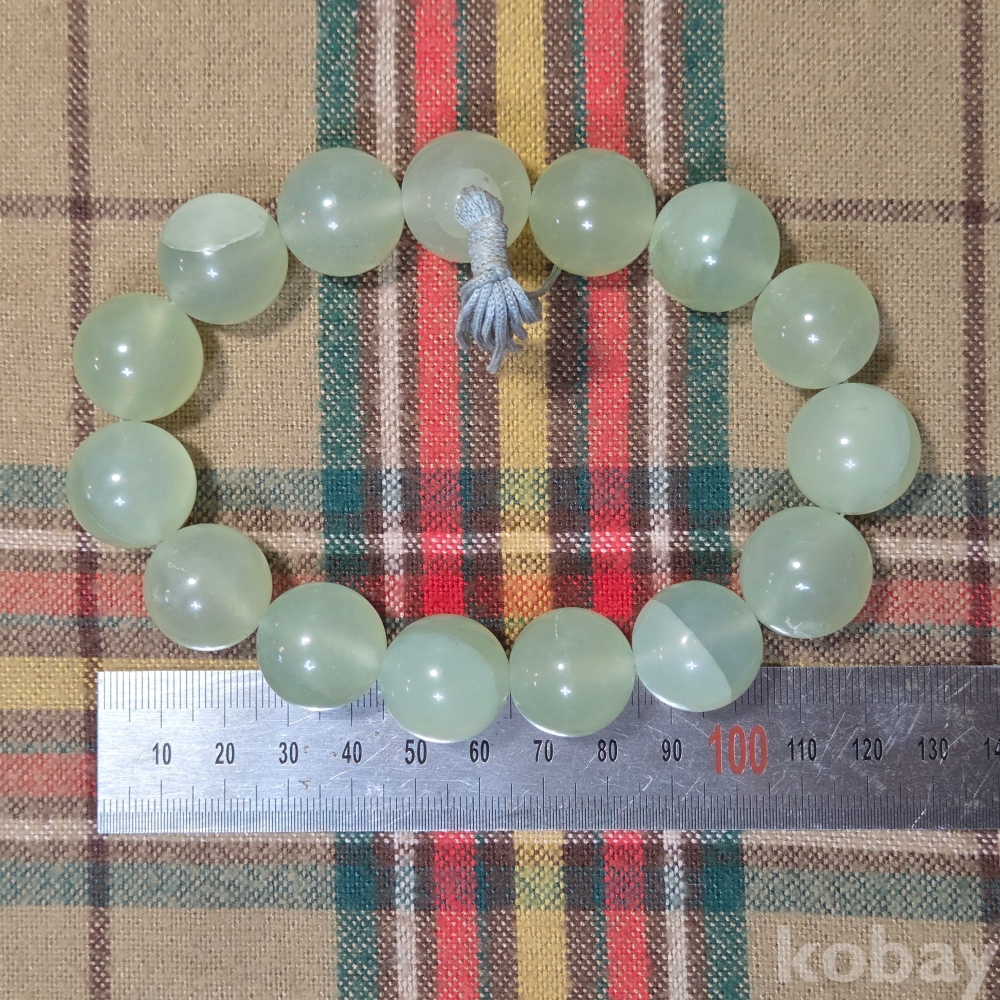 지름2센티급의 두꺼운 알구슬, 고경도의 천연 녹비취옥 구슬의 일본 염주, 단주입니다.