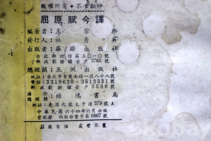 (중국서적) 屈原賦今譯 (굴원부금역) - 1978년. 중국발행...