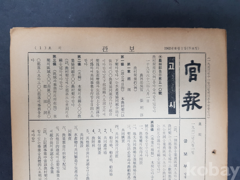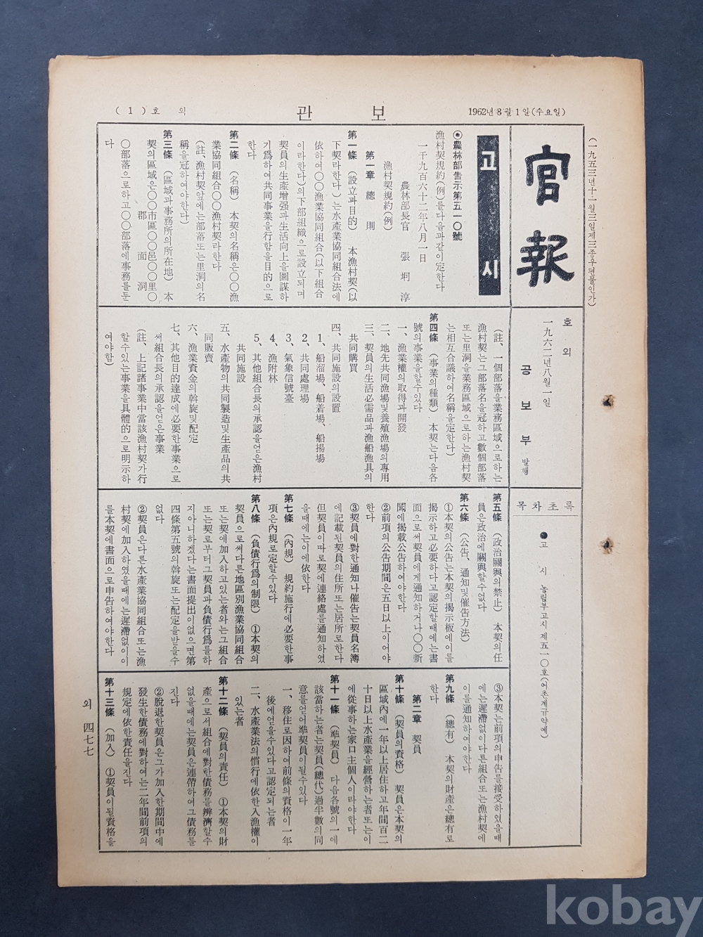 **** 漁村契規約(例) 관련 농림부장관 고시(농림부고시제510호)가 수록된 官報 호외 1962년8월1일