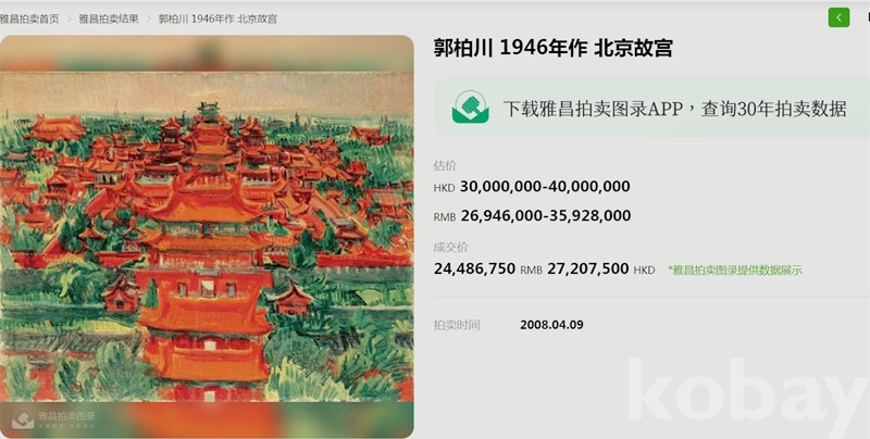 마지막 사진은 곽백천의 대표작 1946년작 북경고궁 경매 참고사진입니다.