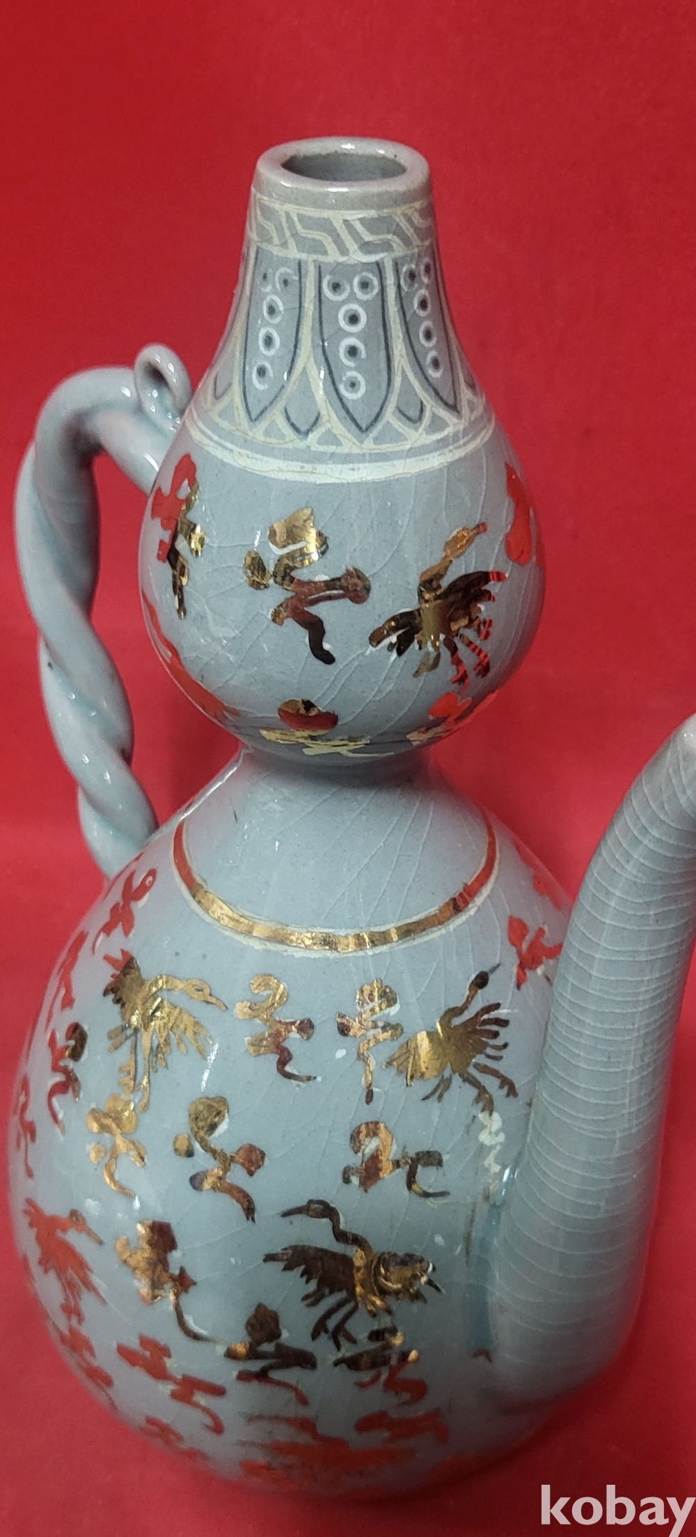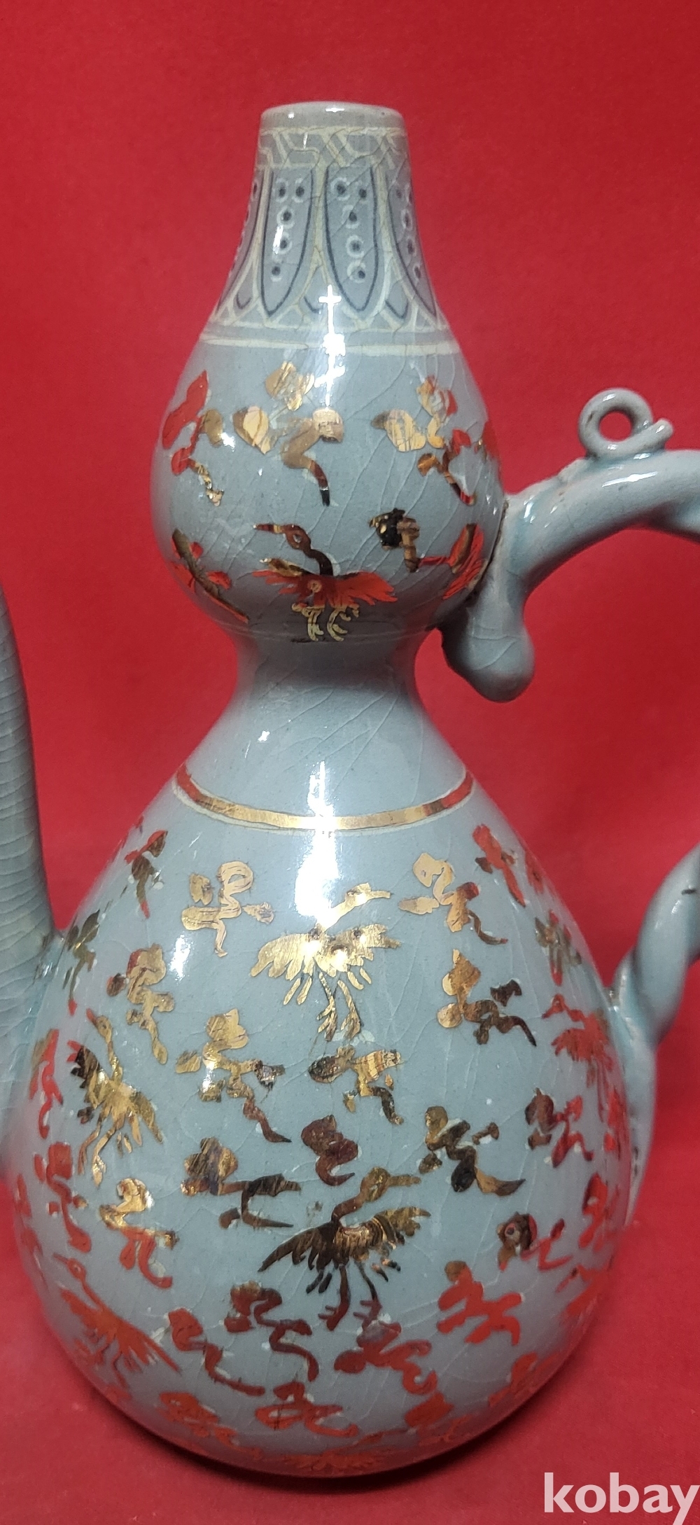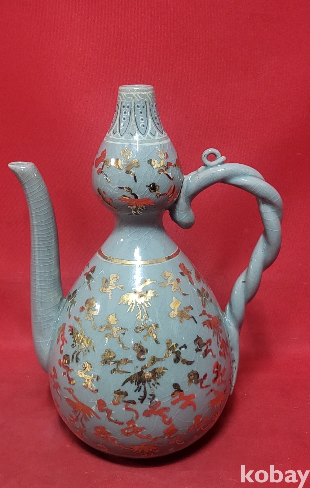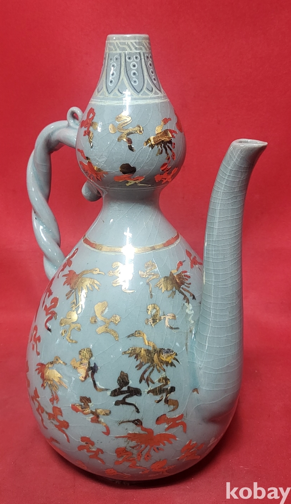 미감정 청자로 금장 구름과 학(雲鶴) 문양 주전자입니다,
