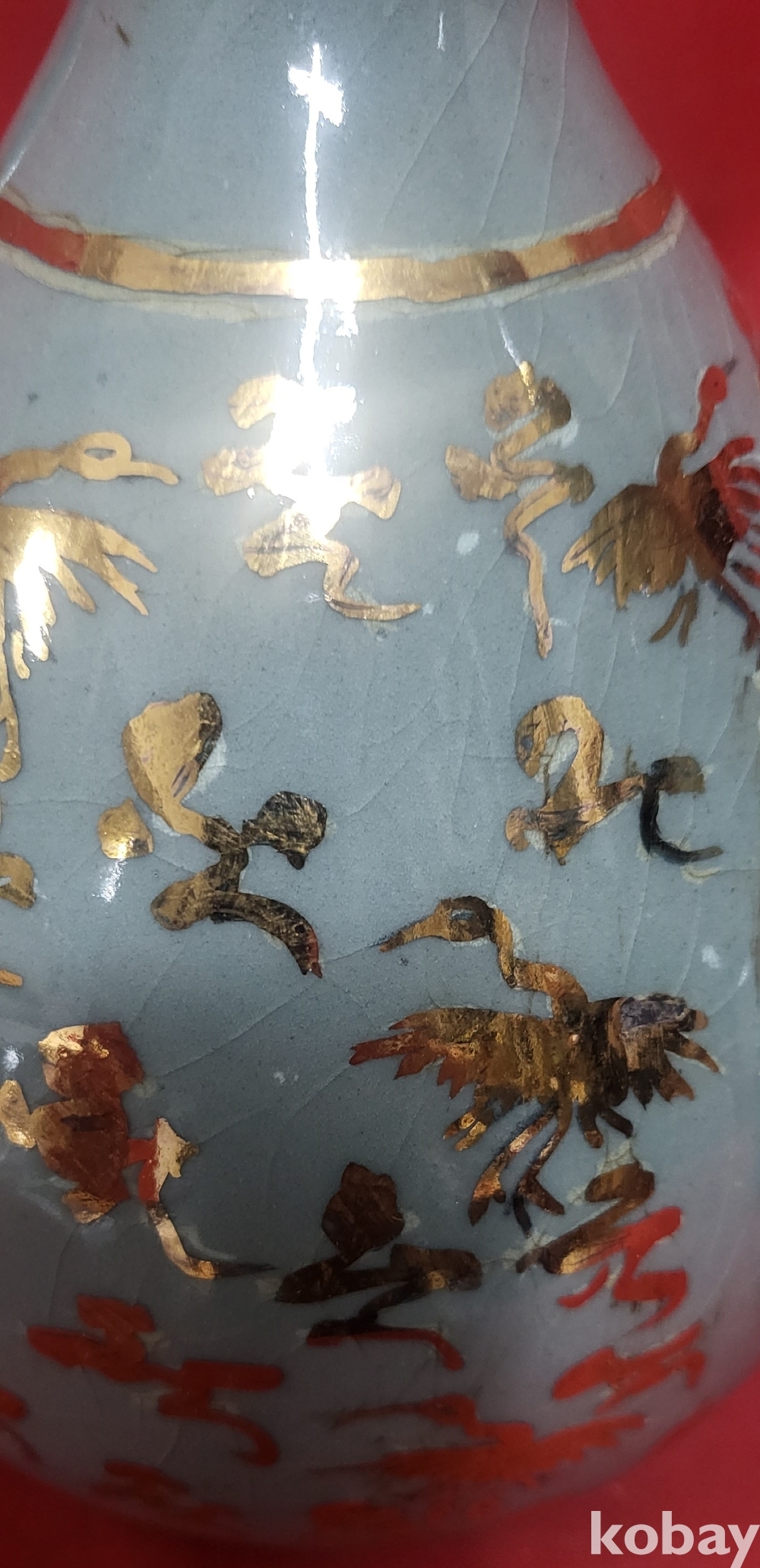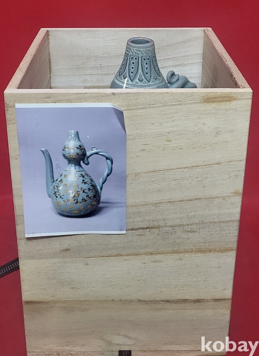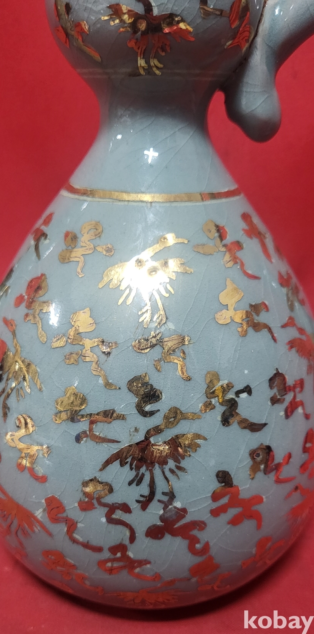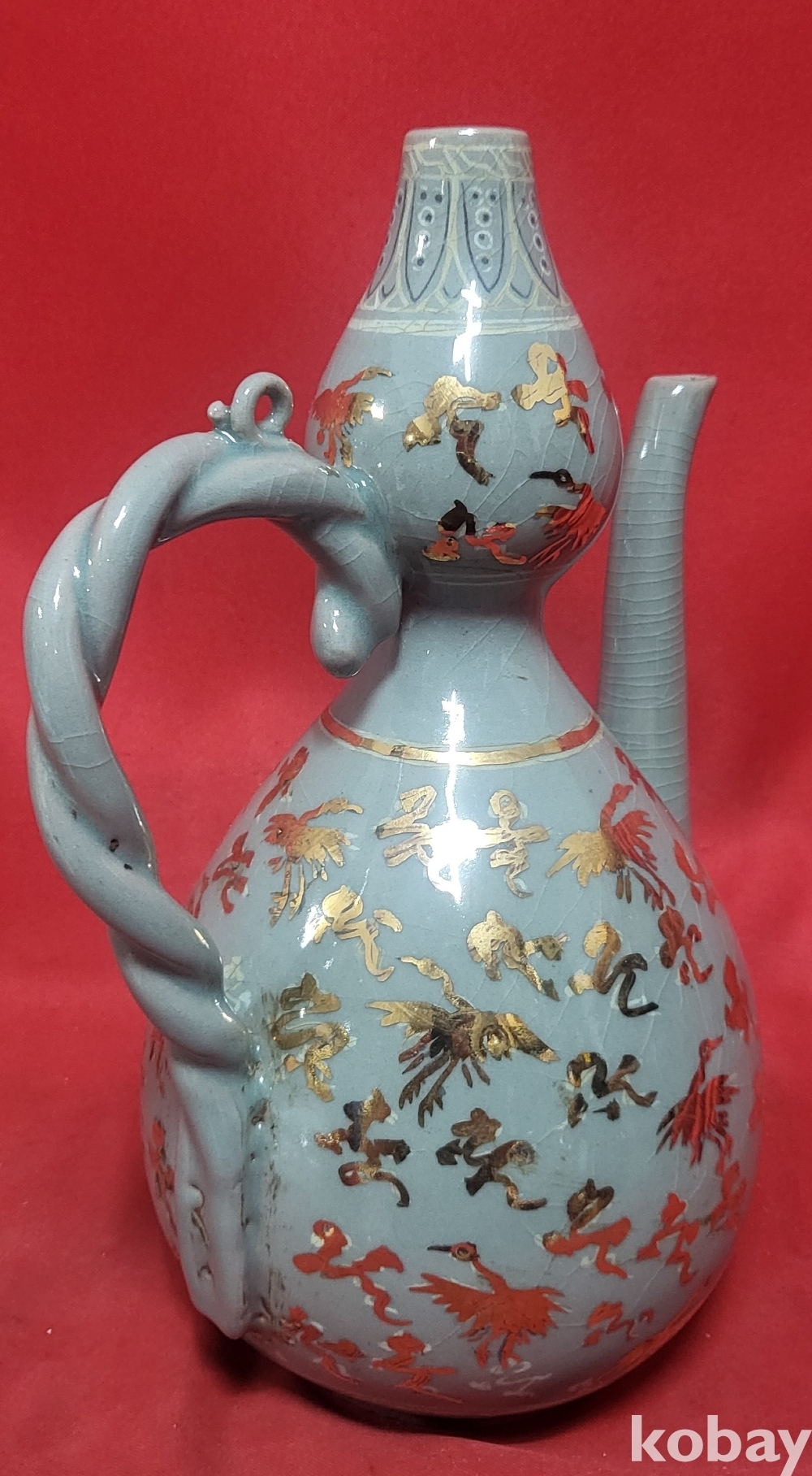 미감정 청자로 금장 구름과 학(雲鶴) 문양 주전자입니다,