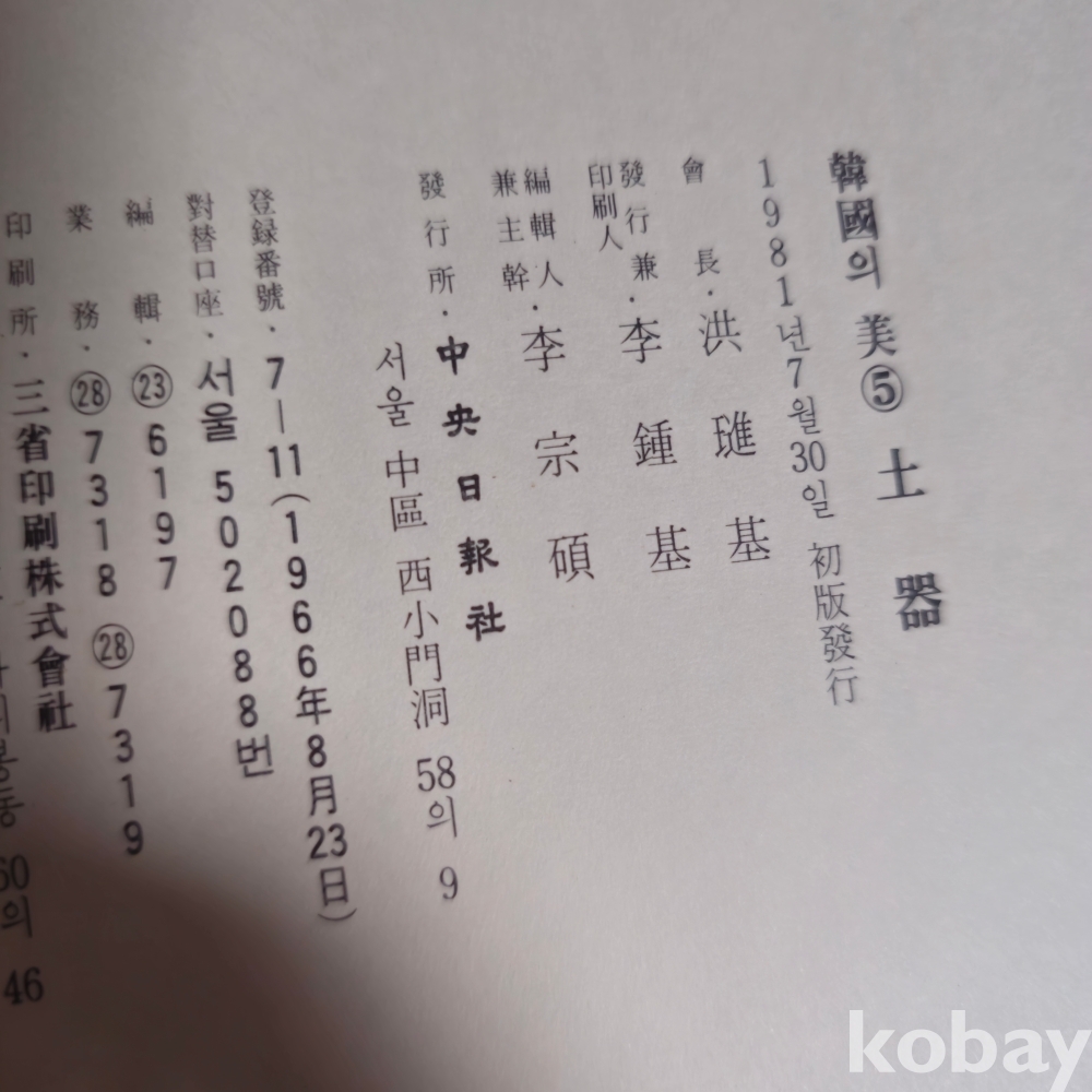 (((韓國의美/圖錄))) 韓國의美 5 土器 (하드카바)(아웃케이스)(1981년 초판)(中央日報/季刊美術)