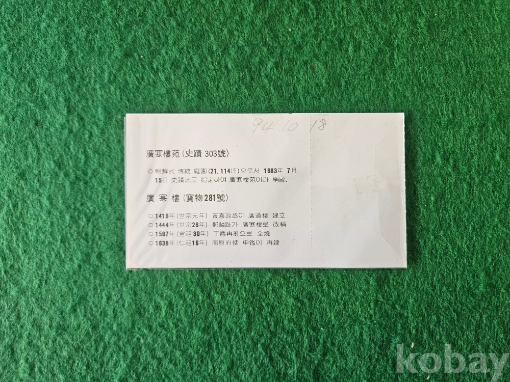 - 광한루 관람권 1 매(청소년.군인 요금 220원 )