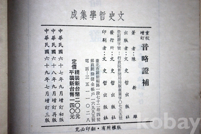 (중국서적) 重增校訂 音略證補 (음략증보) - 1980년. 중국발행...