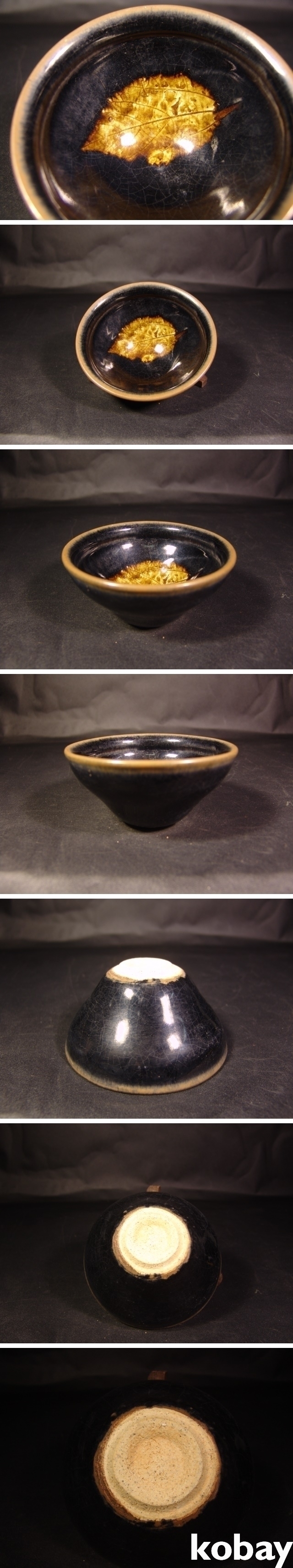 do3584 길주요(吉州窯)흑유 엽문다완(葉紋茶碗)